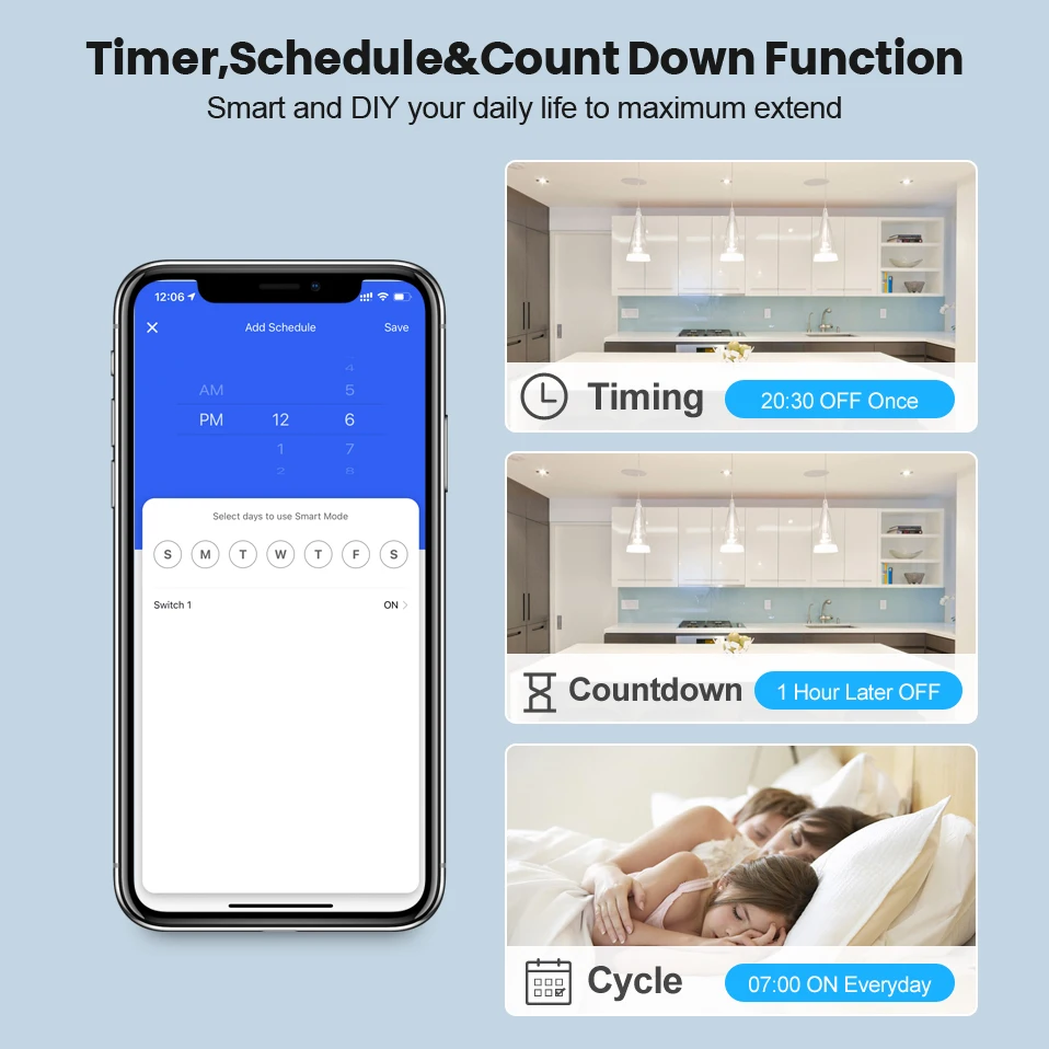 [Таймер, расписание и функция отсчета] --- вы можете создать расписание в соответствии с вашими личными требованиями, а также время и отсчет, умный и DIY ваш ежедневный срок до максимального расширения.