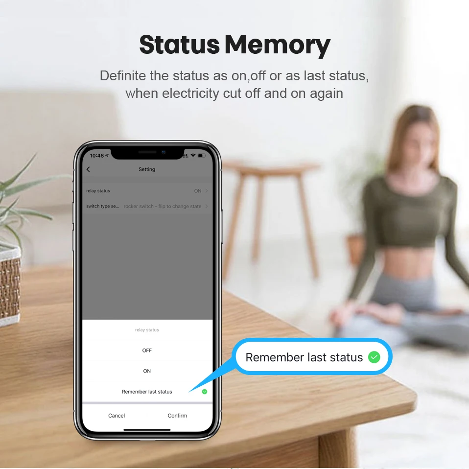 [Память о состоянии] --- когда электричество отключается и включается снова, вы можете определить статус как ВКЛ, выкл или как последний.