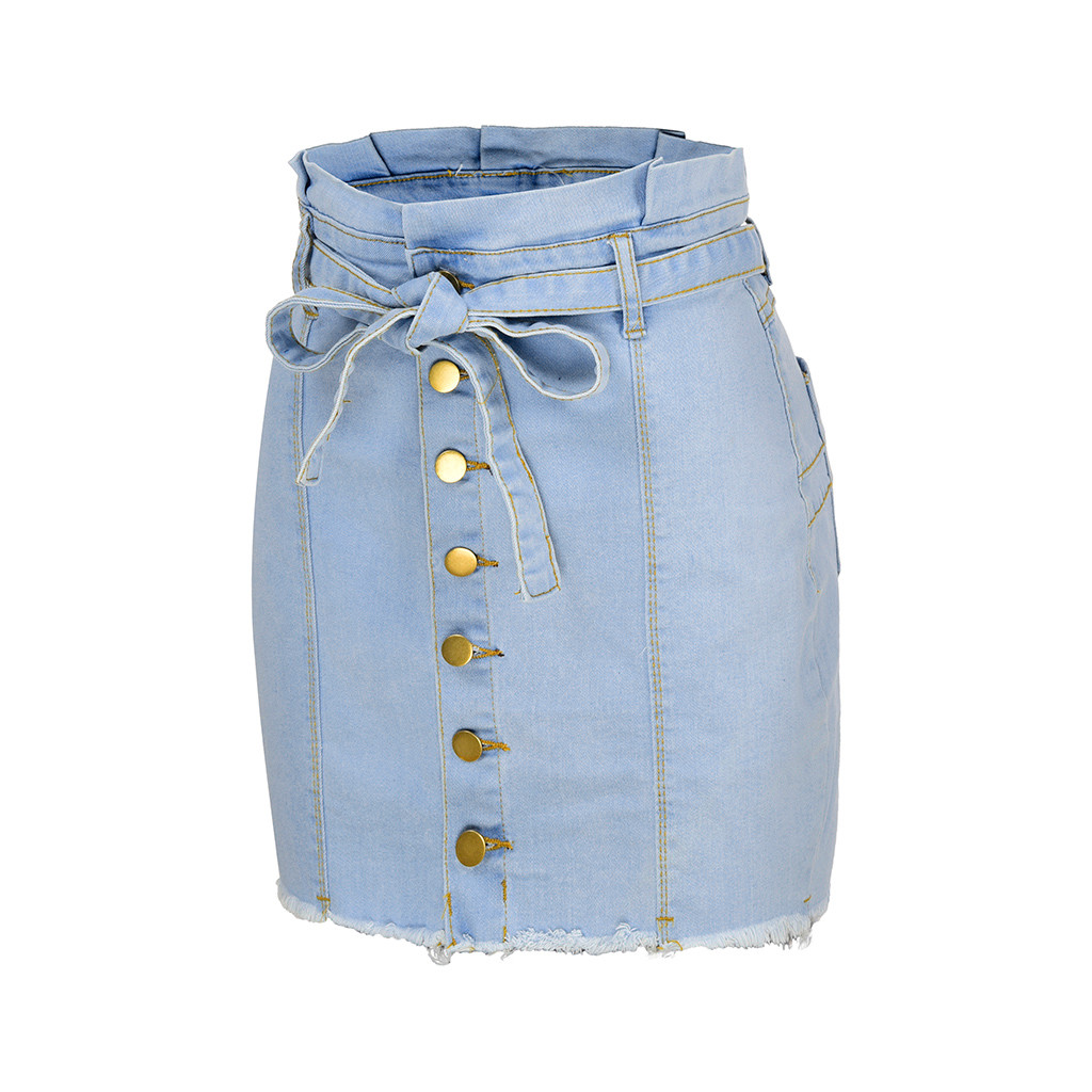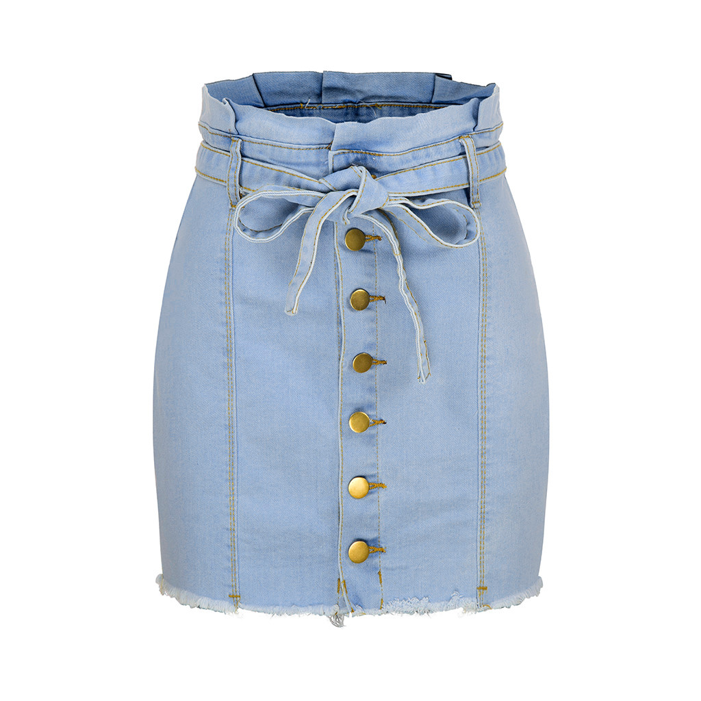 Женская сексуальная облегающая Повседневная Джинсовая юбка на пуговицах, однотонная приталенная юбка на шнуровке