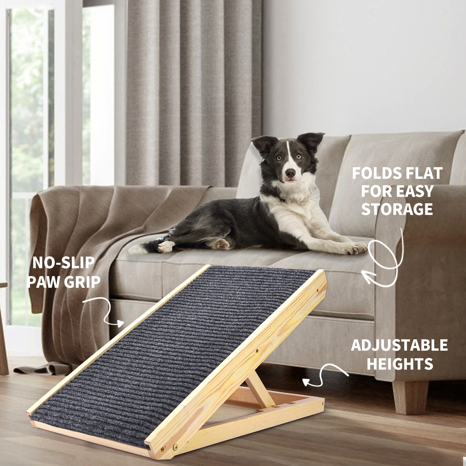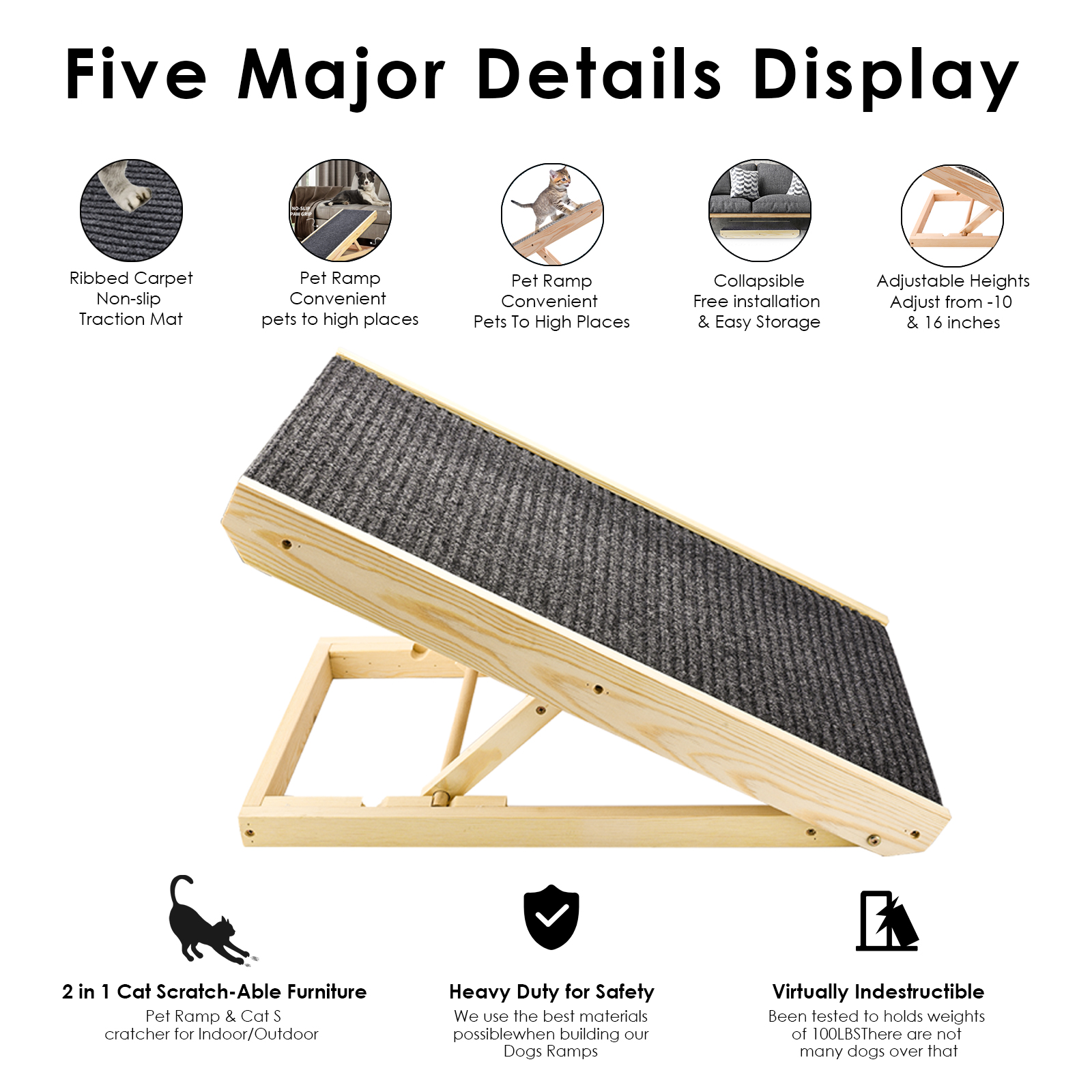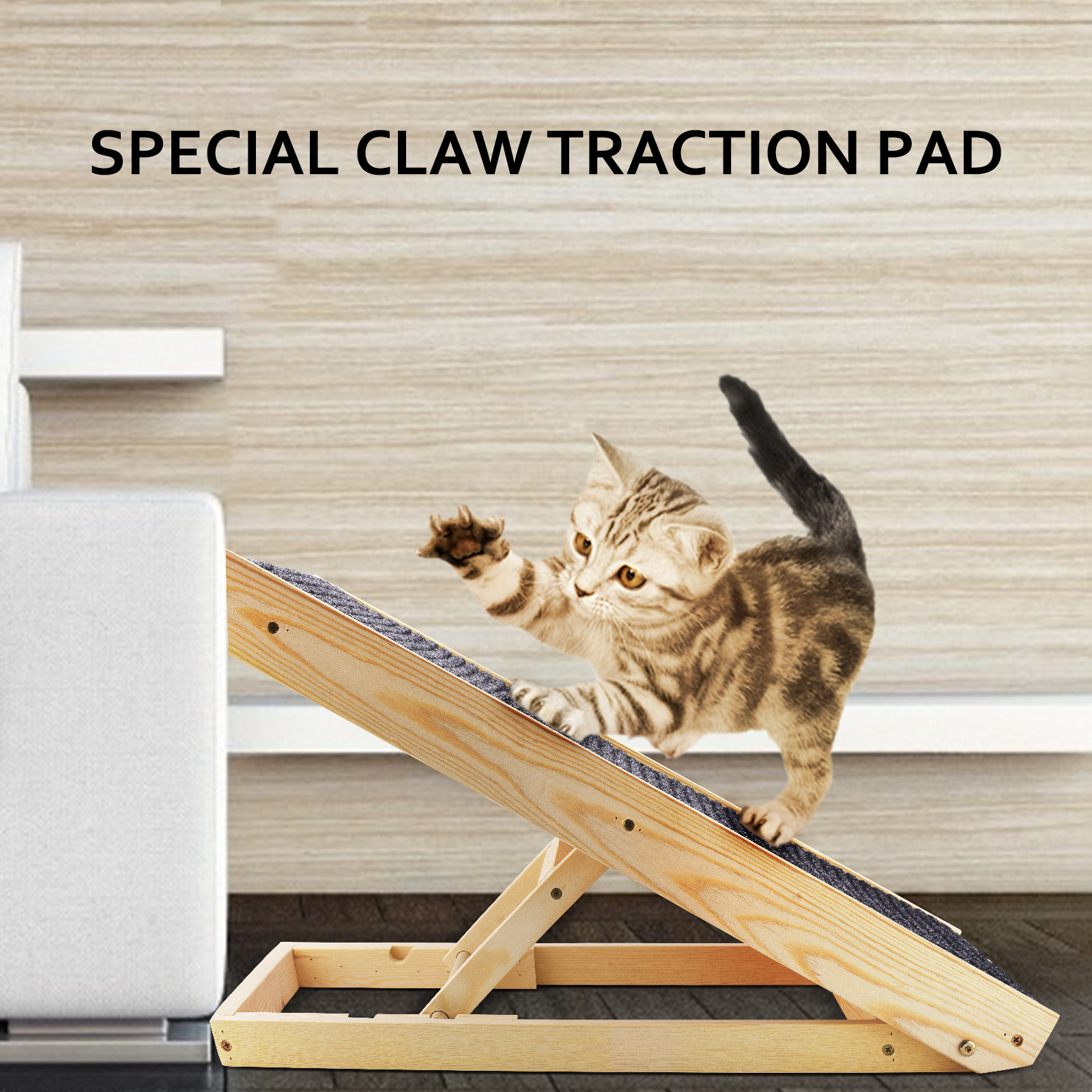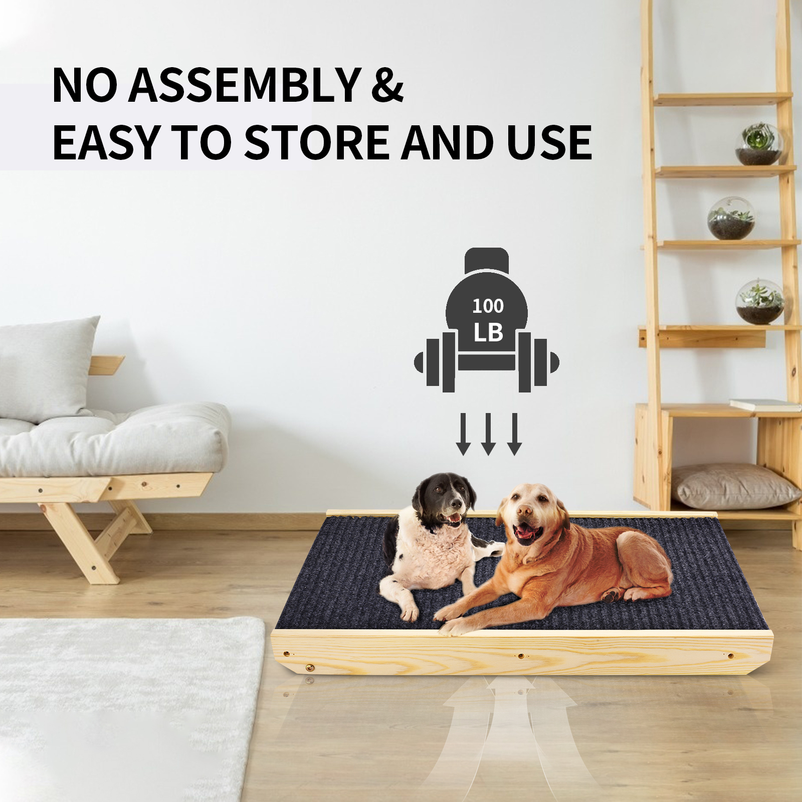 Прочный:Вся конструкция пандуса изготовлена из экологически чистой древесины, крепежные винты из нержавеющей стали, могут поддерживать домашних животных, которые весят до 50 кг (110 фунтов). Используйте как рампу для доступа к мебели или как скребок, помогает предотвратить царапины мебели.
