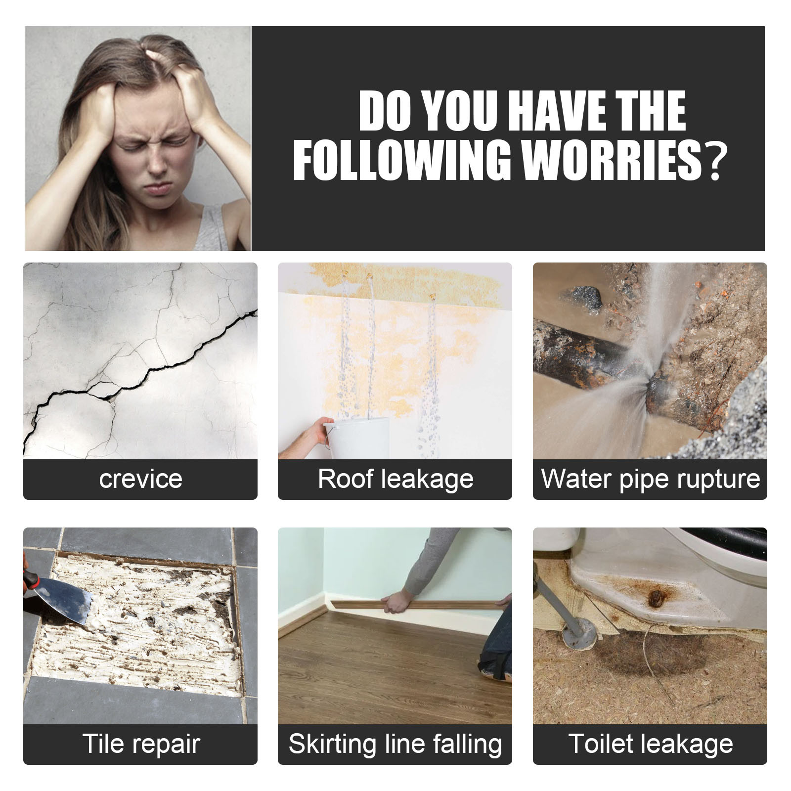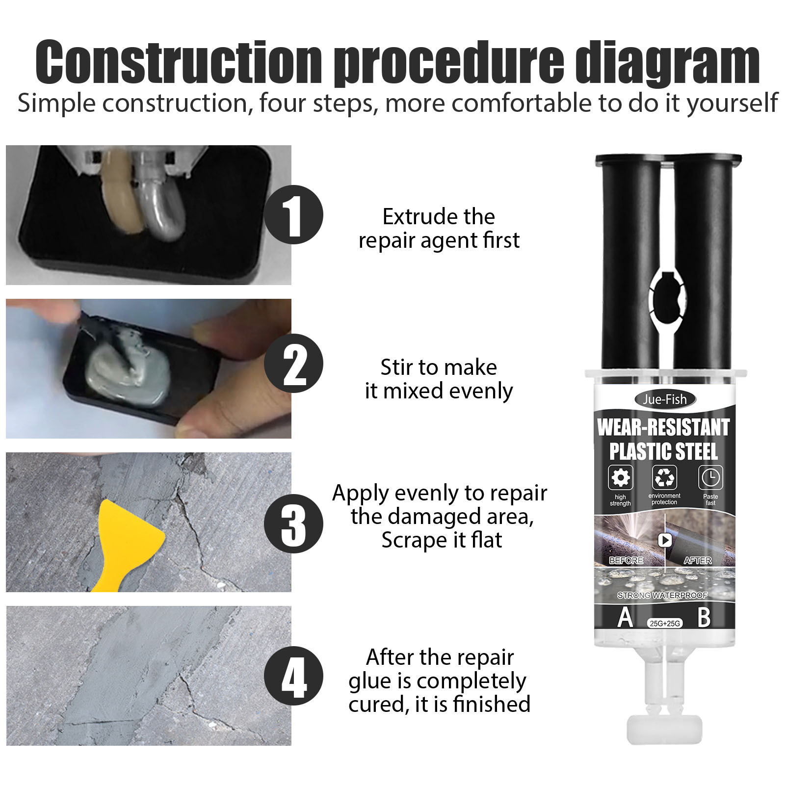 Designed for fixing and sealing cement, wall joints, cracks, pipe breaks, toilet repairs, tile breaks, etc.!