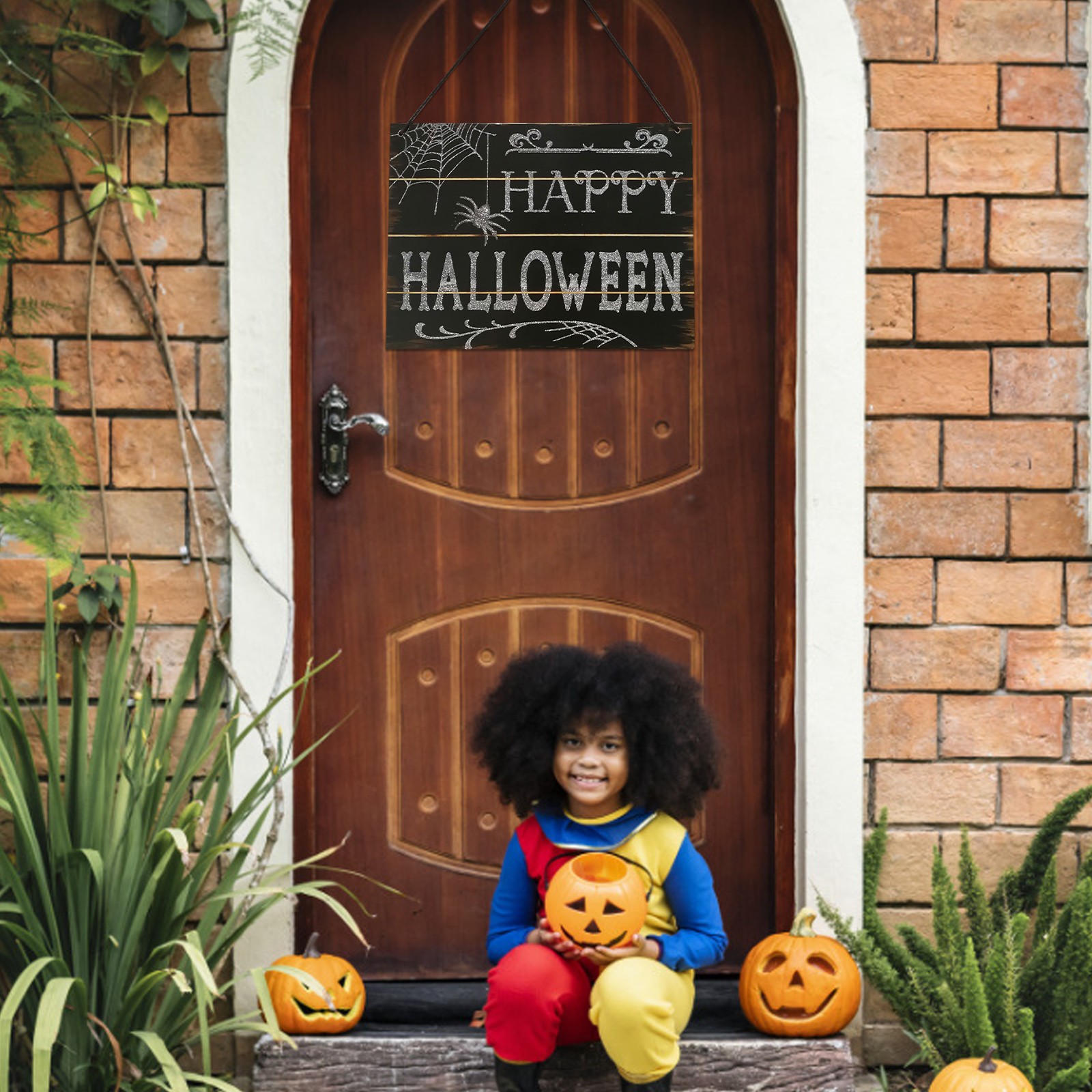 1 xХэллоуин Висячие деревянные ремесла паук подвесные двери украшения и настенные знаки