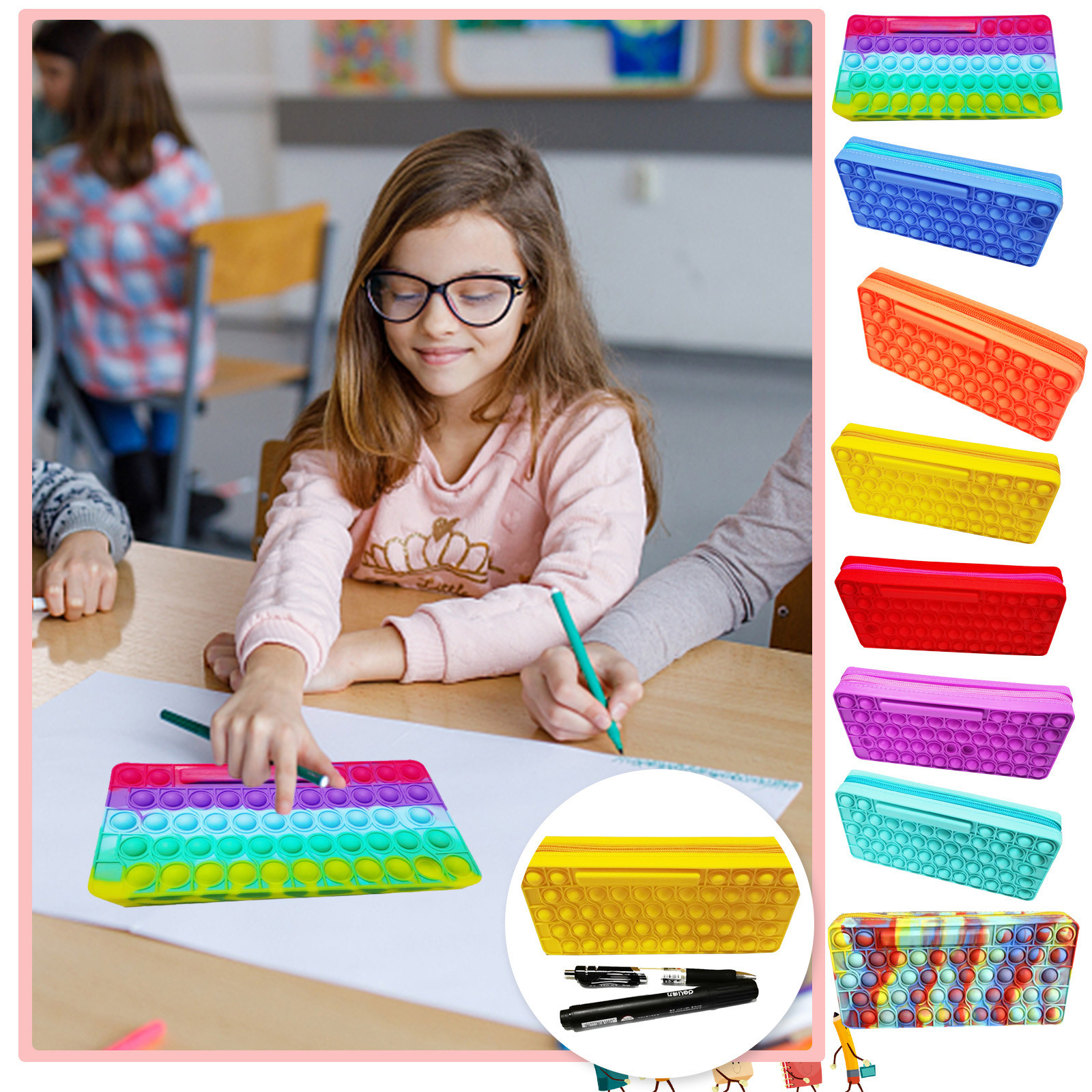 Удовлетворить ваши ежедневные потребности Этот пенал может держать почти все необходимое студентам. Популярный толчок в любое время и в любом месте Это сенсорный Сумка для хранения канцелярских принадлежностей позволяет вам играть в любое время и в любом месте, независимо от того, В школе, офисе или повседневной жизни. Он также может хранить вещи во время Снятие стресса. 100% новый бренд. Использование высококачественного экологически чистого силикагеляСырье-Материалы, безопасны, экологически безопасны, здоровы и без запаха. С простым Дизайн, мягкая поверхность полна всплывающих пузырьков, обеспечивая немедленное Удовлетворенность и простота использования для детей, людей с обучением Инвалидов, пожилых людей и других людей. Эта сенсорная игрушка и Сумка для пальцев дешевая и может использоваться как чехол-карандаш, Кисть для макияжа Сумка, сумка для хранения канцелярских принадлежностей, кошелек и т. Д., многофункциональные канцелярские принадлежности Коробка для хранения. Удовлетворить ваши различные потребности. Сенсорные игрушки и Сумки от непоседы дешево, очень подходят для развлечений или волнения Идти, а также помочь успокоить стрессовые ситуации, что делает это простым И радостный игрушечный мешок идеально подходит для школы, парка, дома, на работе или в любом месте. Также может быть предоставлена В подарок друзьям. Родители могут дать его своим детям как Подарок на день рождения или Рождественский подарок. Преподаватели могут дать его студентам, как Выпускные подарки или призы.1х Радужная коробка для карандашей