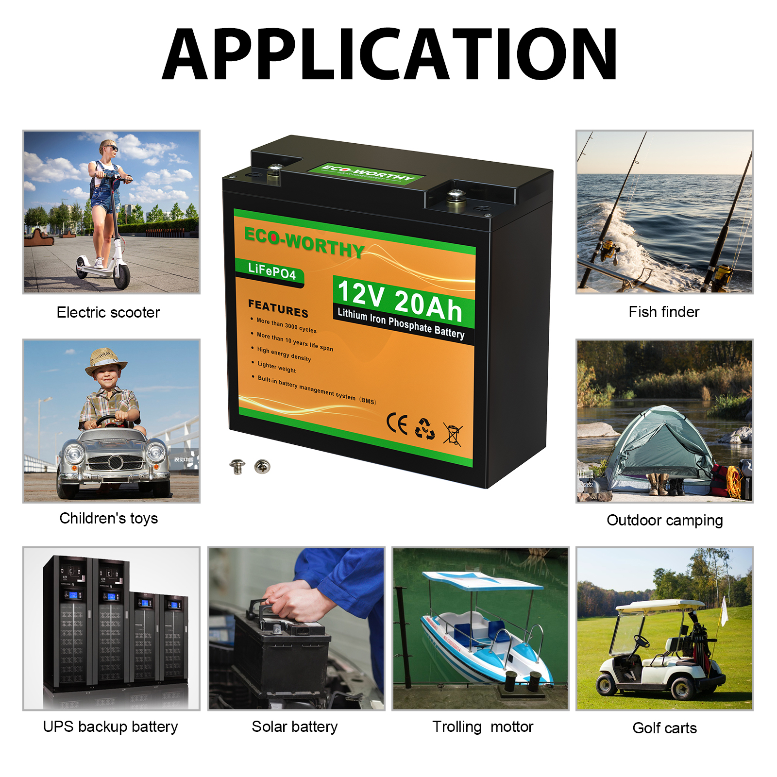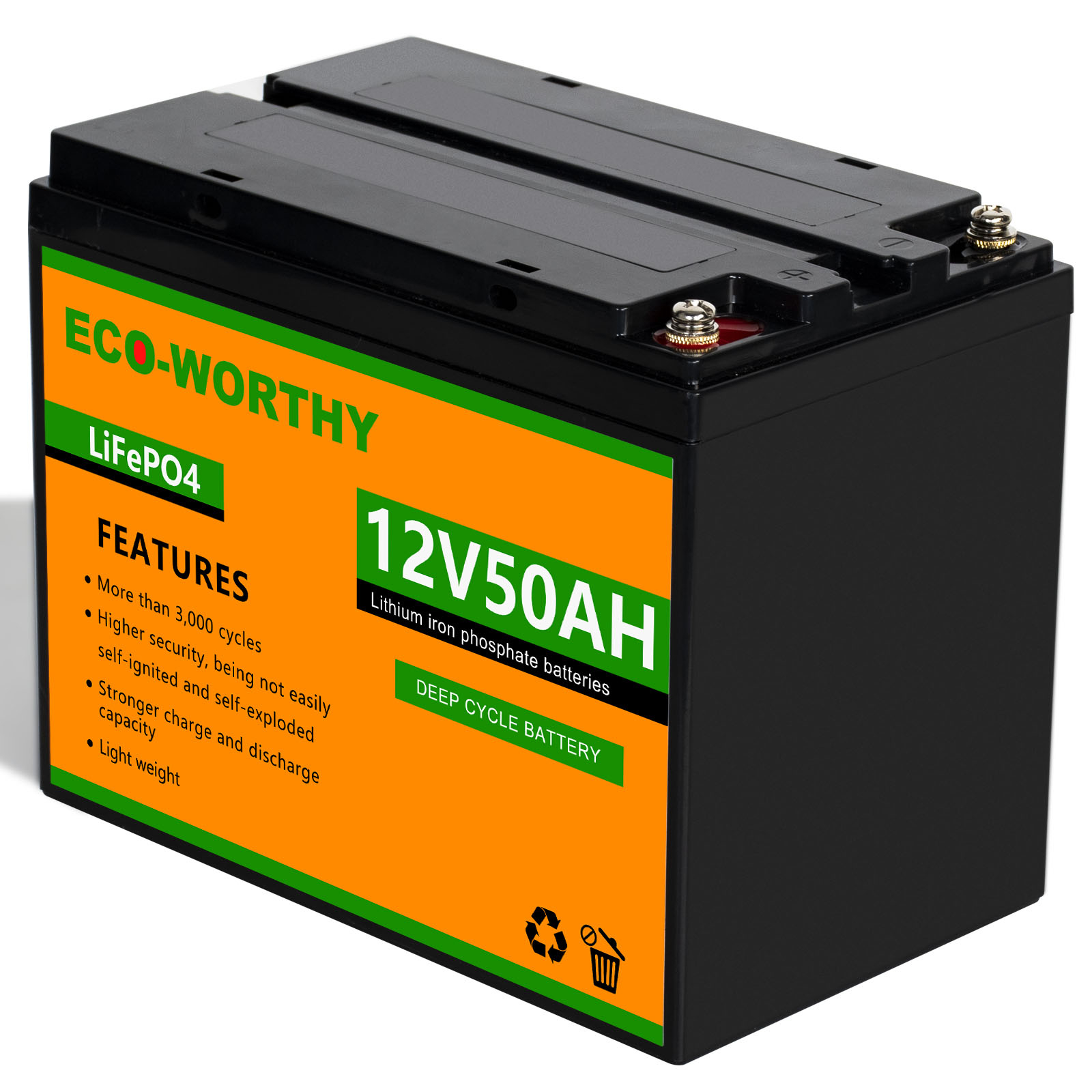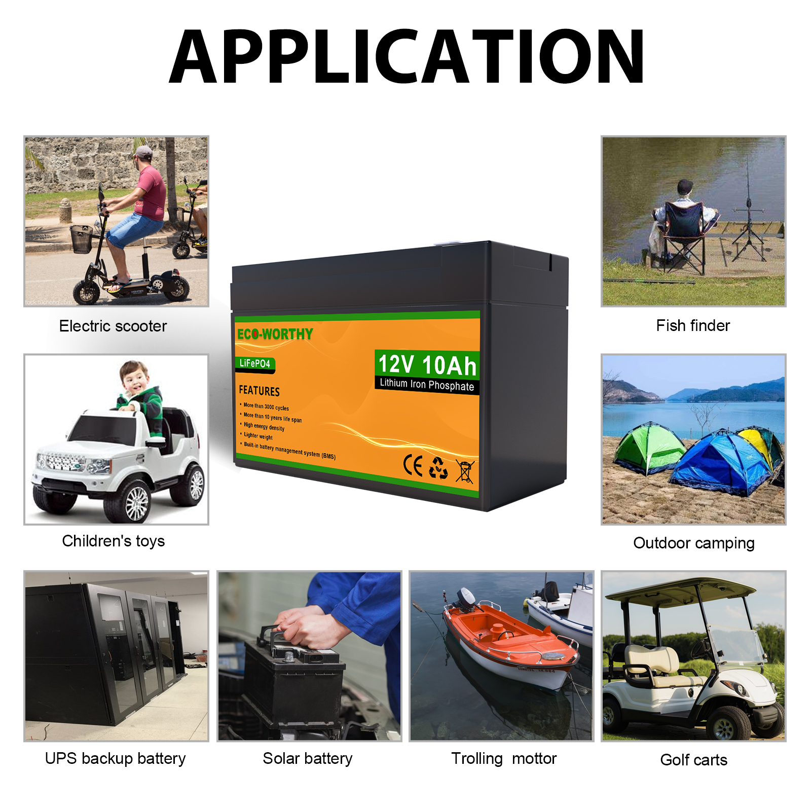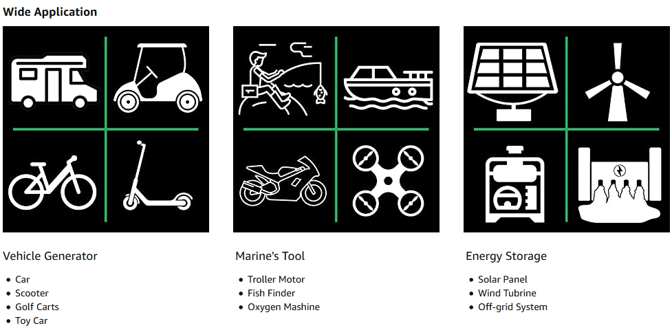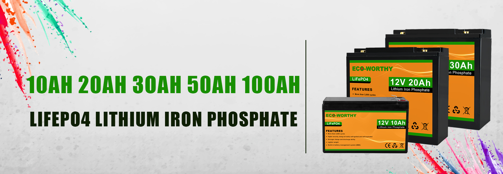 10ач/20ач/30ач/50ач/100ач/150ач 12В литиевый фосфат состоит из комбинации 12 высокоэффективных литиевых батарей. Он небольшой по размеру и весу светильник, и имеет только одну третью свинцово-кислотной батареи той же емкости. Встроенная система управления батареей может предотвратить перезарядку и разрядку во время использования батареи. После 2000 циклов зарядки, он по-прежнему имеет 80% емкости аккумулятора. Срок службы до 8 лет.