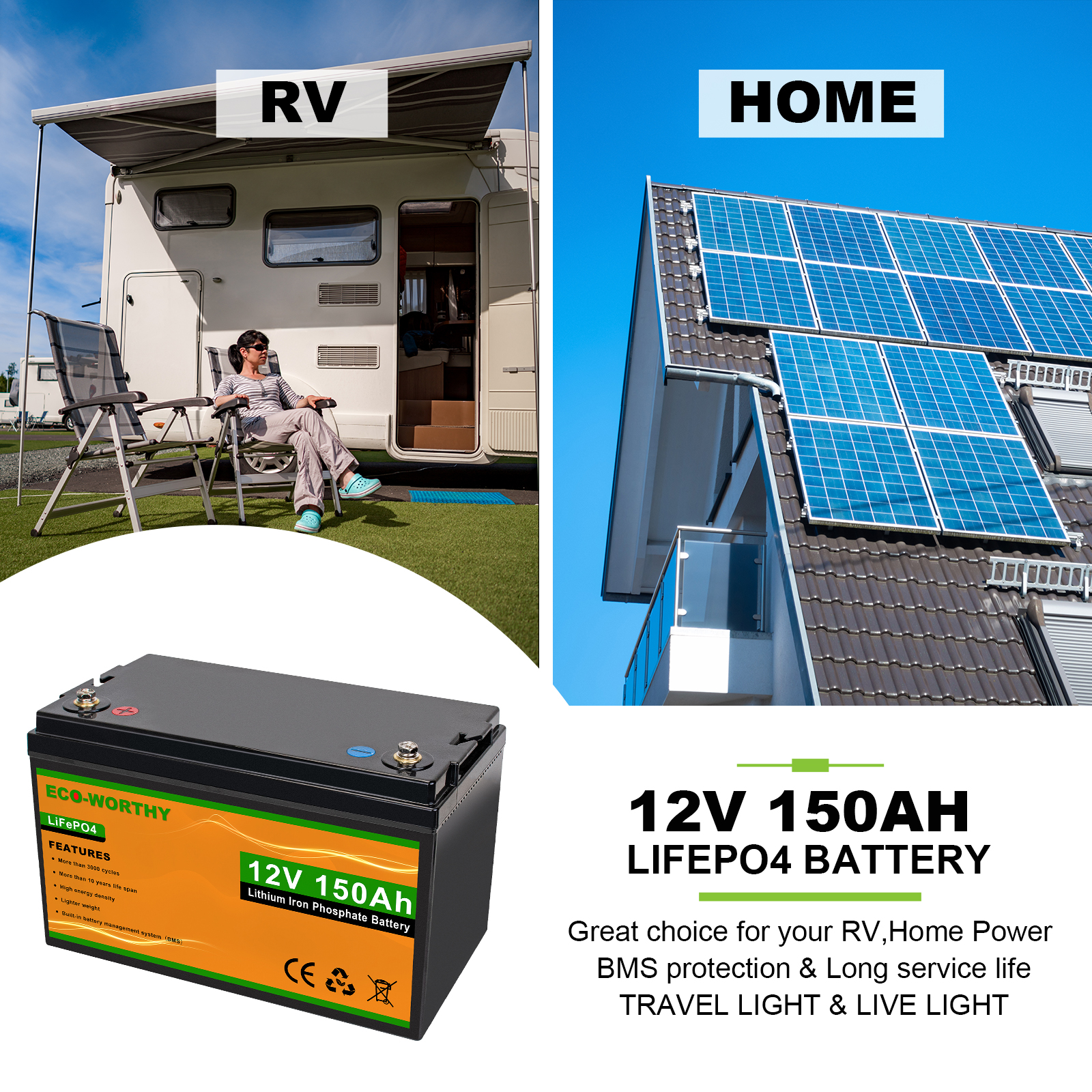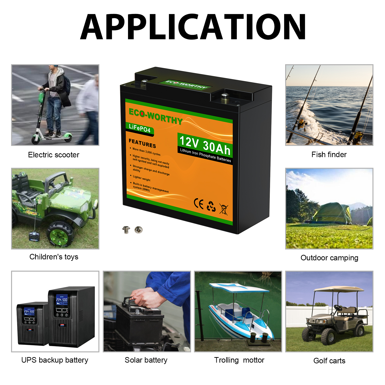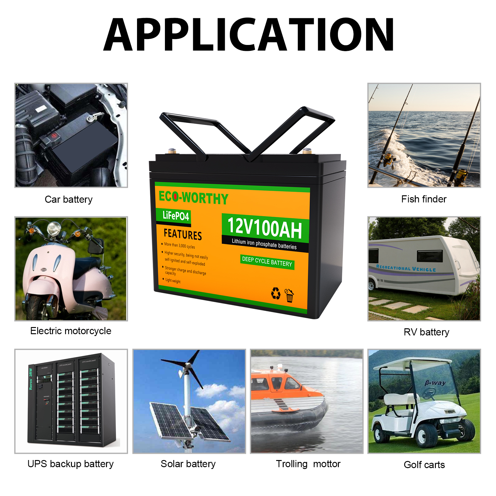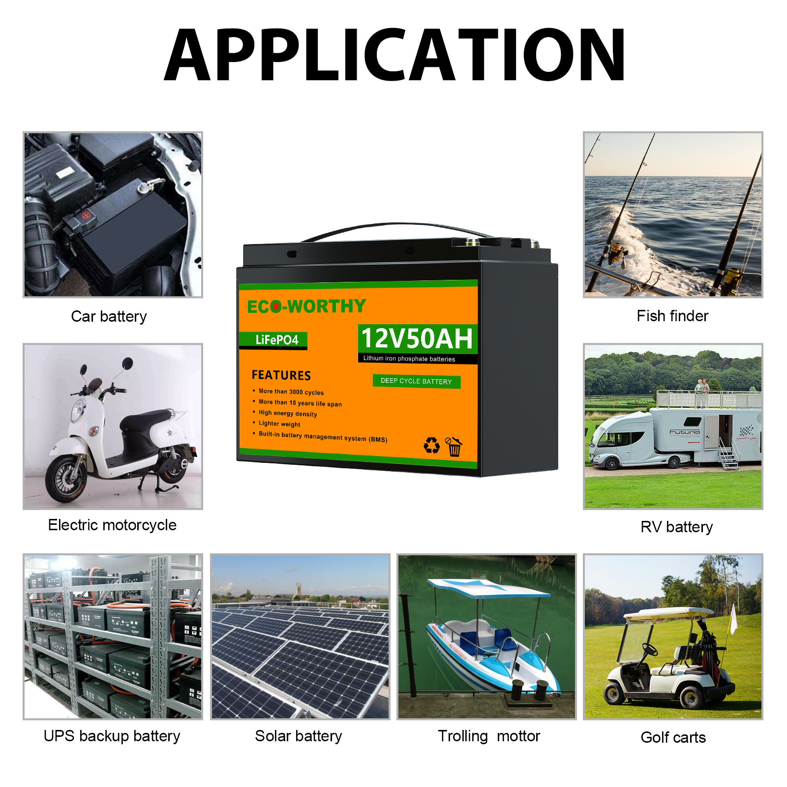 10ач/20ач/30ач/50ач/100ач/150ач 12В литиевый фосфат состоит из комбинации 12 высокоэффективных литиевых батарей. Он небольшой по размеру и весу светильник, и имеет только одну третью свинцово-кислотной батареи той же емкости. Встроенная система управления батареей может предотвратить перезарядку и разрядку во время использования батареи. После 2000 циклов зарядки, он по-прежнему имеет 80% емкости аккумулятора. Срок службы до 8 лет.