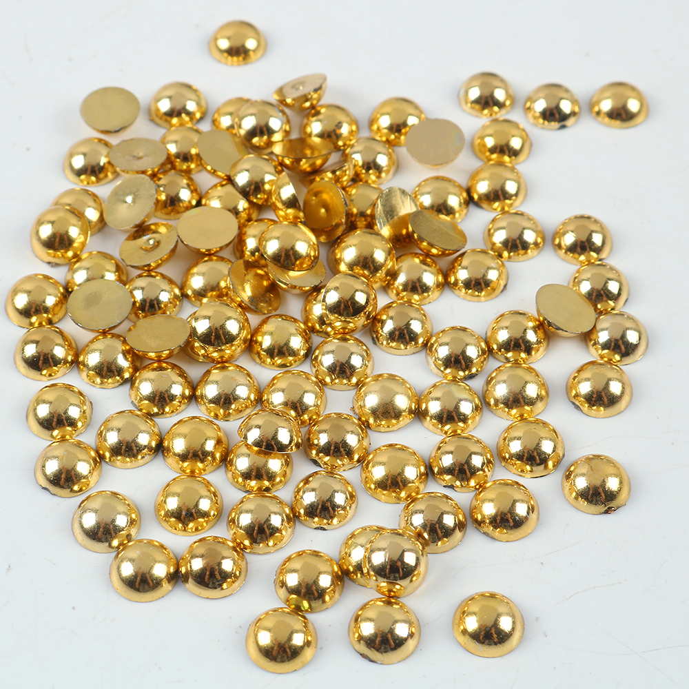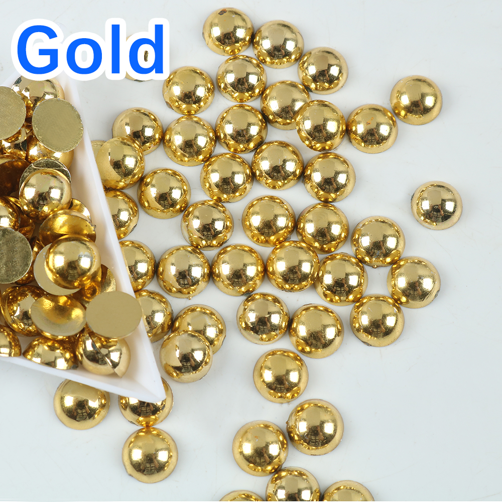 Золотые золотые полукруглые жемчужные бусины с плоской задней частью жемчужные бусины для чехол для телефона, дизайн ногтей, украшение для рукоделия