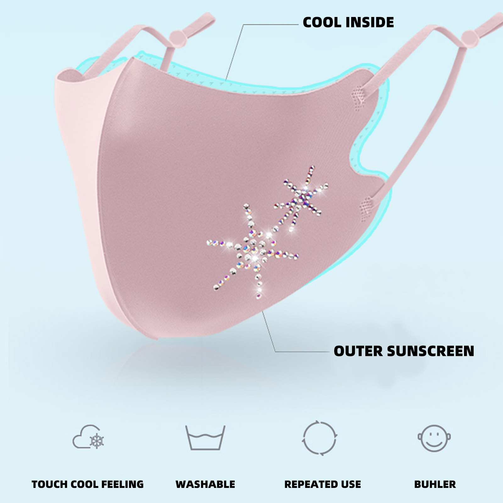 1 сетчатая дышащая маска из ледяного шелка для детей, регулируемая и моющаяся Солнцезащитная маска