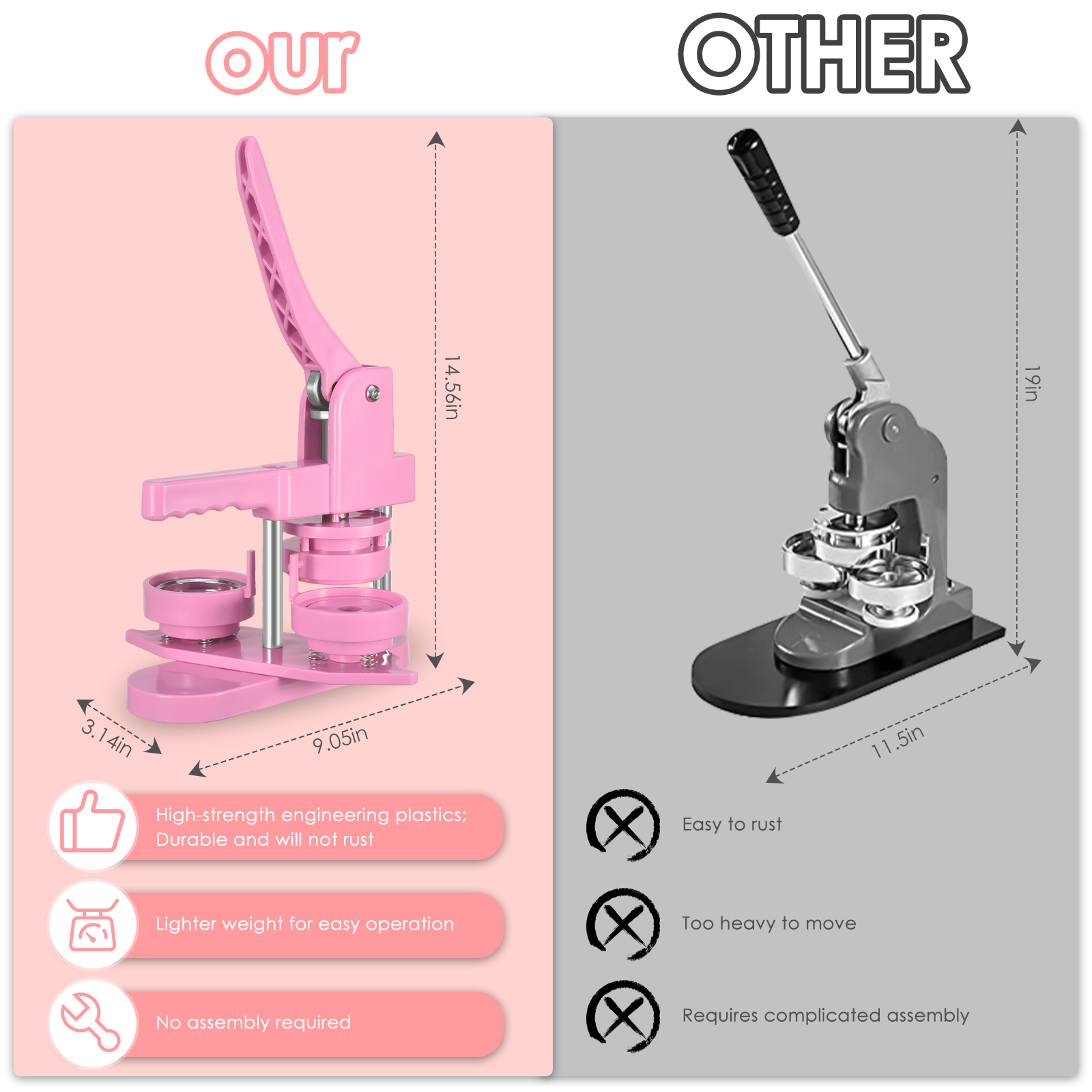 • Уникальный вращающийся дизайн и детали: Наш производитель кнопок принимает отличительное поворотное крепление для прессования штампов, что больше усилий, чем традиционная скользящая пластина, позволяет новичкам научиться пользоваться им. Нужно только экспериментировать 1-2 раза, каждый может овладеть трюком. Новый Upgrade-3rd Gen, эргономичная ручка и механически Разработанный подшипник экономят вам больше усилий и дают вам больше комфорта.