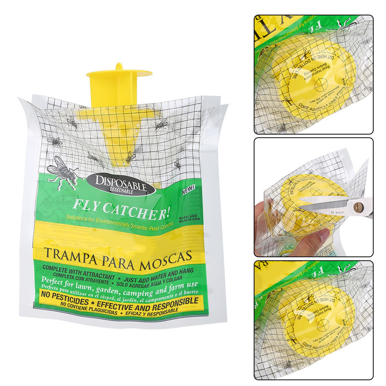 В этой ловушке используется Водорастворимая приманка-аттрактант, которая трудно сопротивляться мухе.