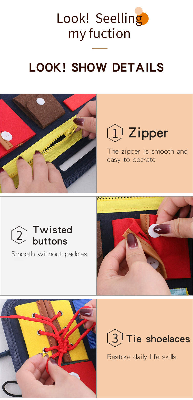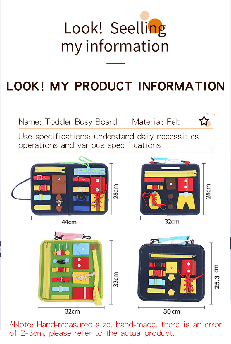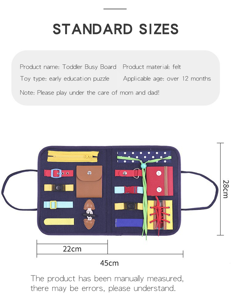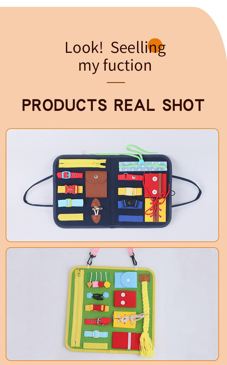 1. Легко носить с собой: игрушка-это Портативная сумка для хранения пазлов раннего образования, которую легко носить с собой и хранить, а Сенсорная панель Монтессори поможет Вашему ребенку развить базовые навыки.