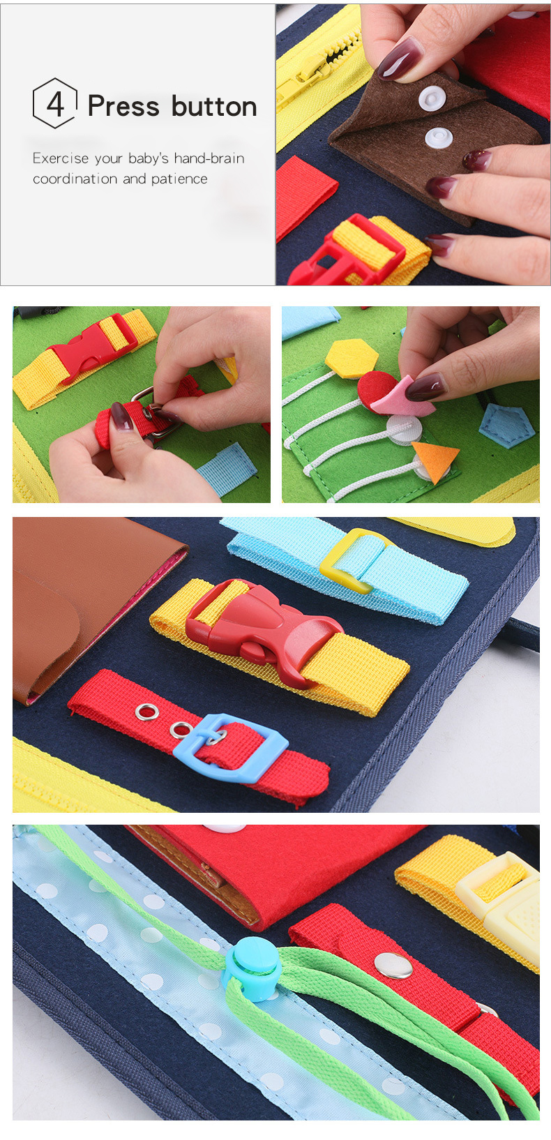 2. Двигательные навыки: занятая доска для малышей помогает моторике, памяти и абсолютно требует мощности мозга. Он использует трехмерную мягкую шерстяную ткань и чувствует себя мягким.