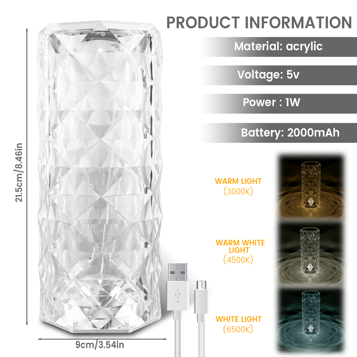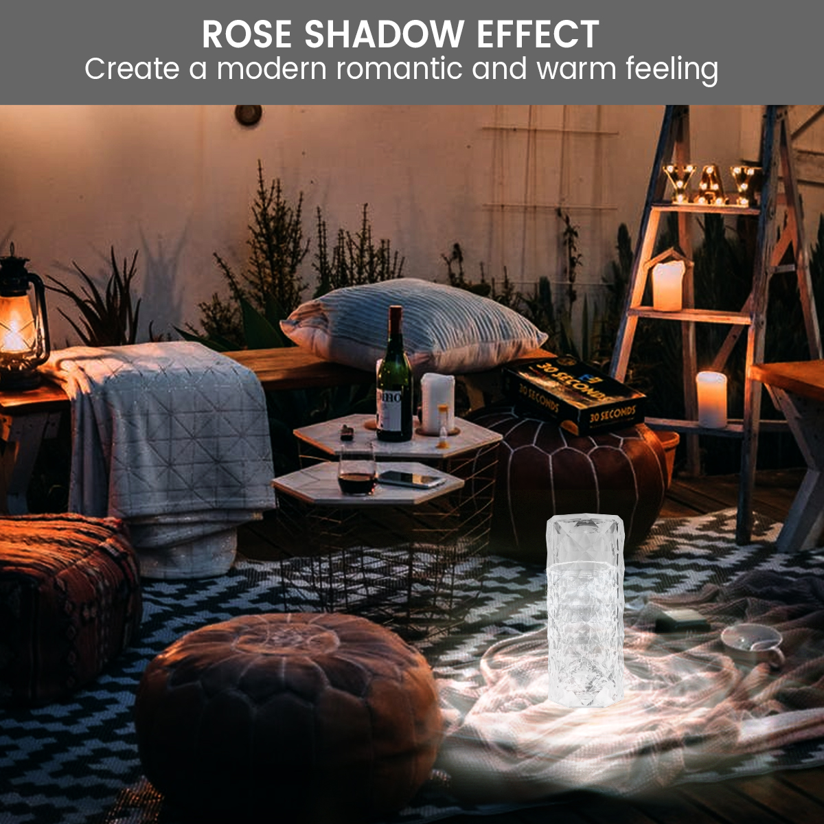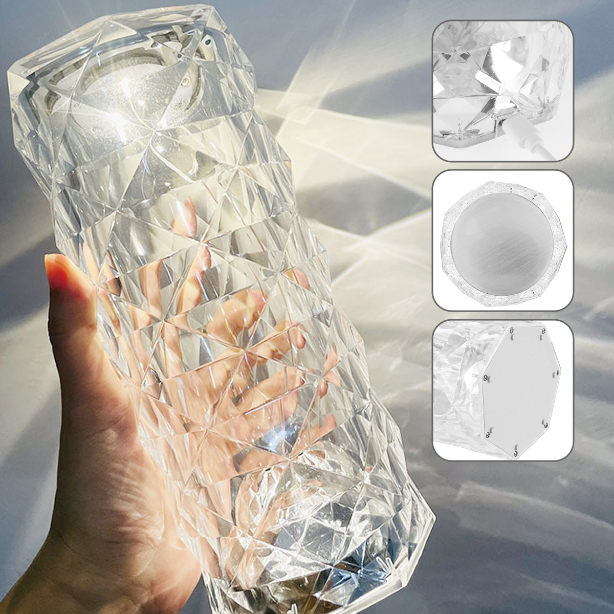 [Современный и элегантный дизайн] когда включена Красивая перезаряжаемая USB лампа с кристаллами, светильник создает розовый светильник и эффект теней, создавая современный романтический и теплый образ для вашей комнаты.