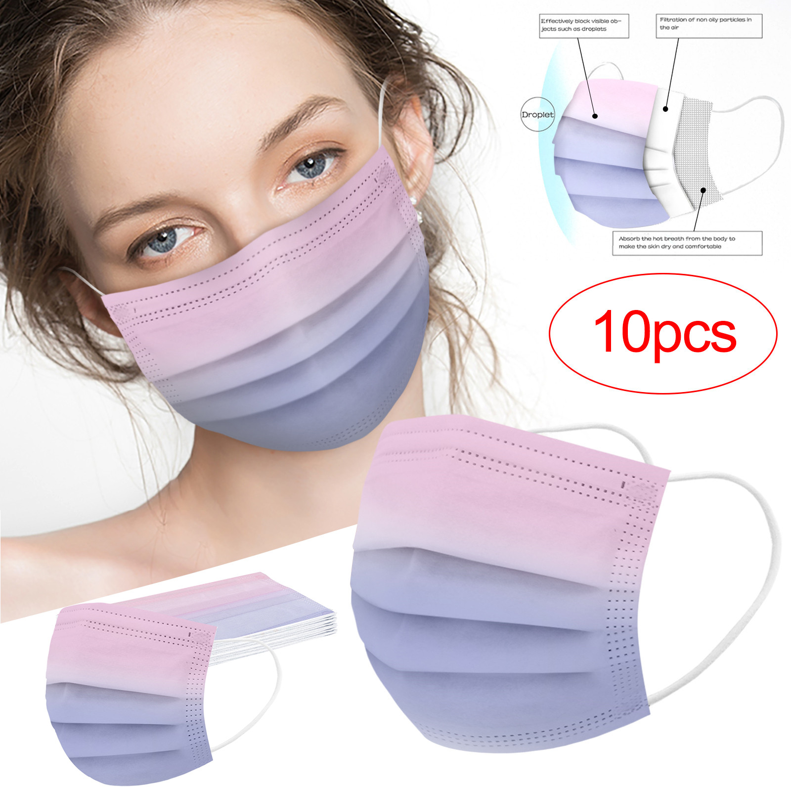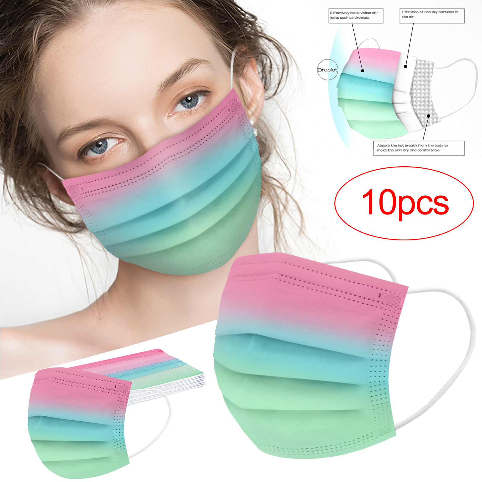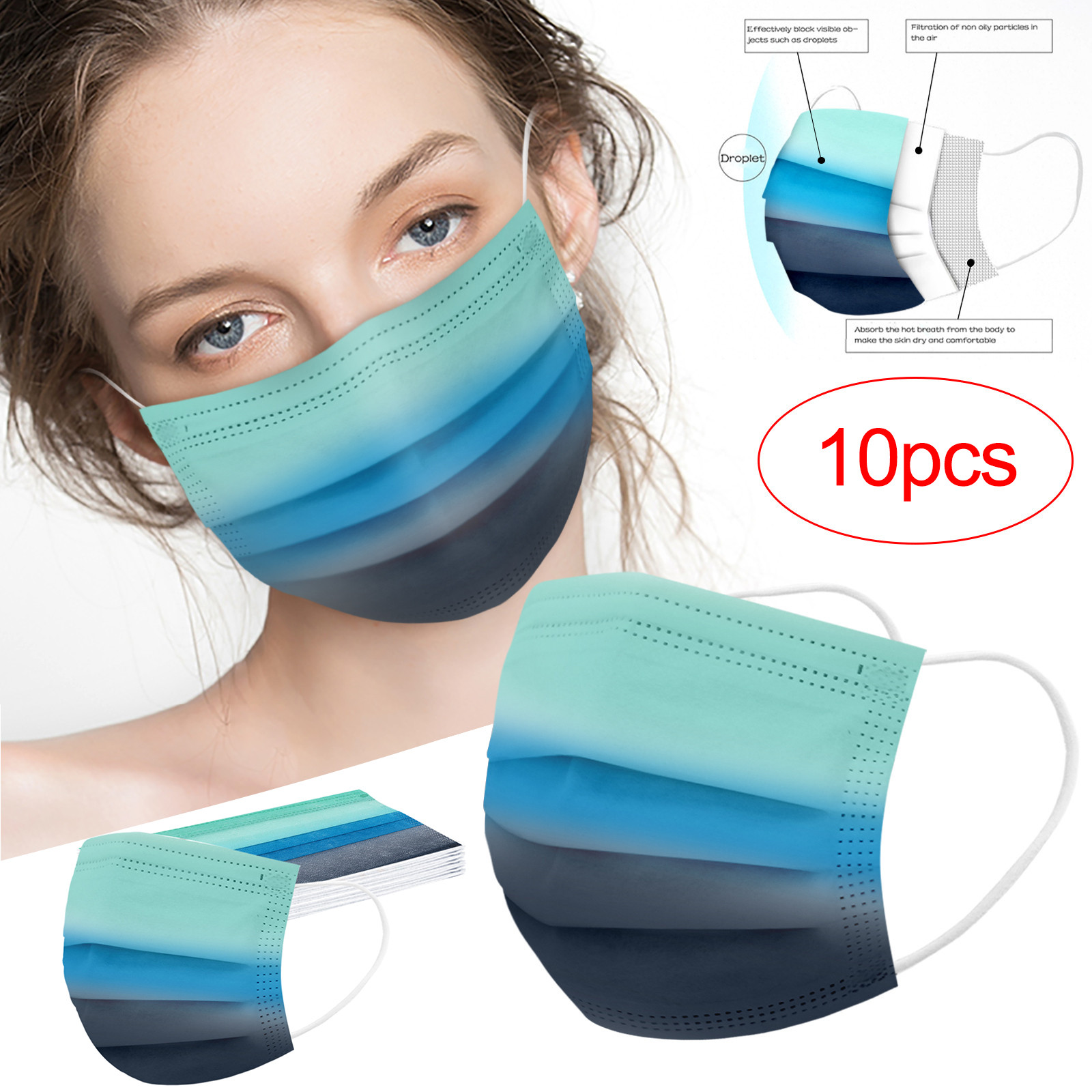 Трехслойная одноразовая Защитная маска для печати из нетканого материала с градиентом для взрослых, 10 шт.