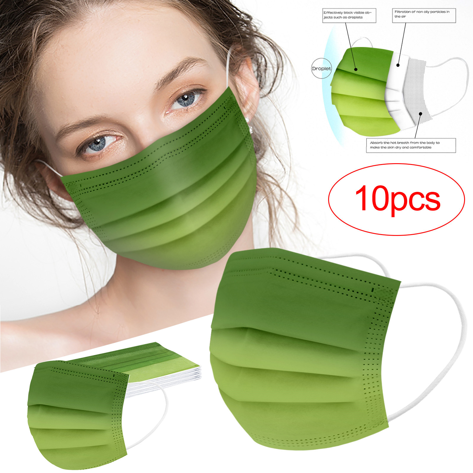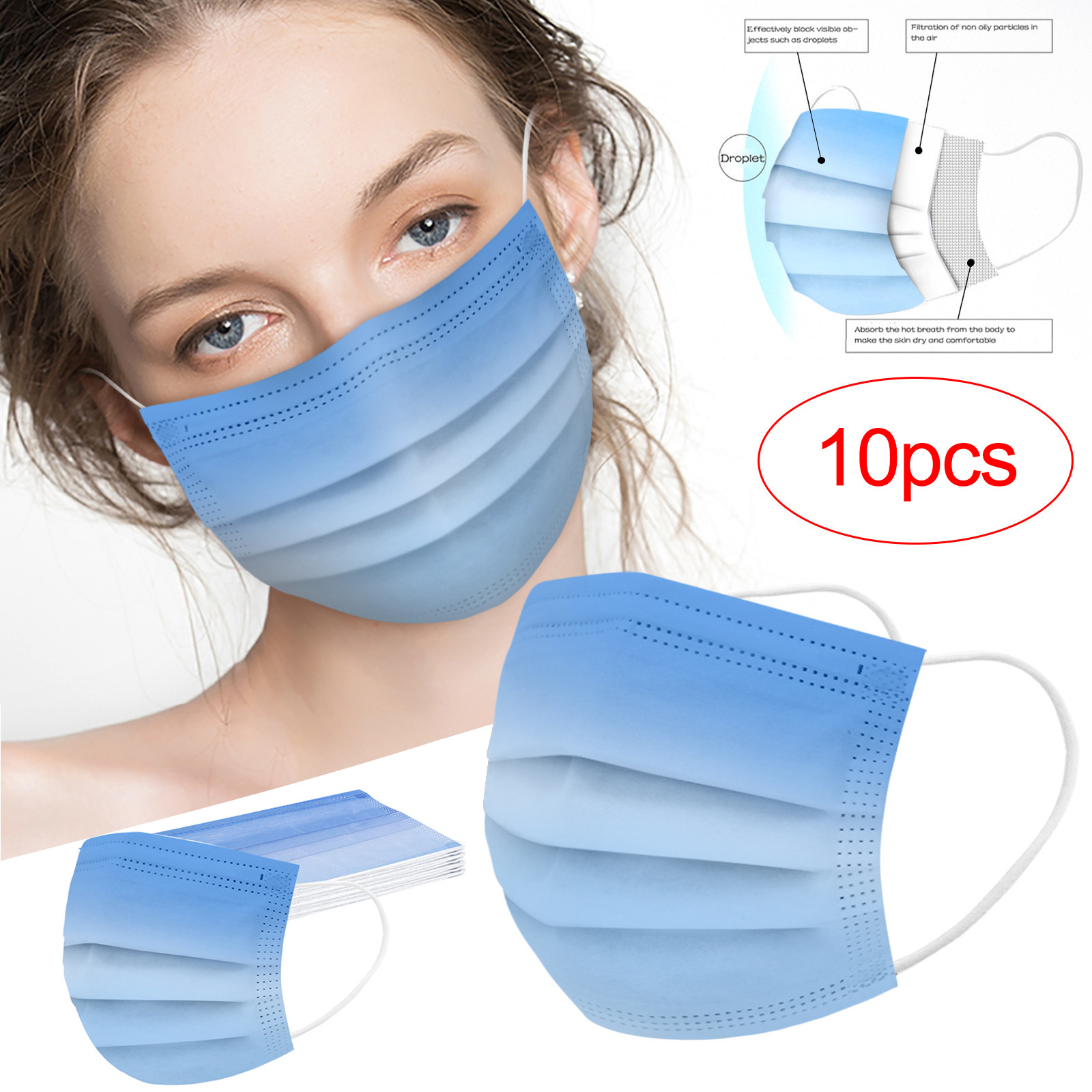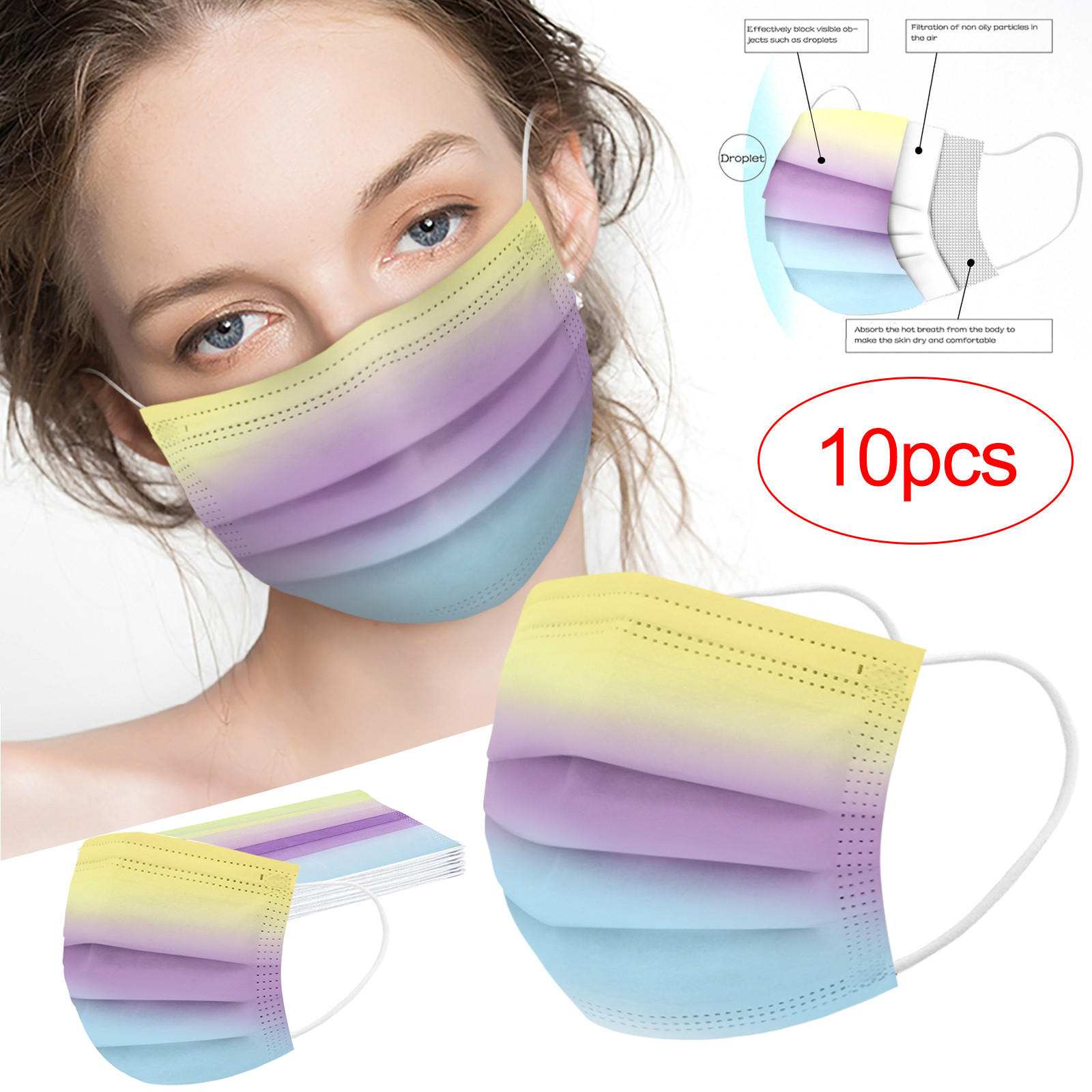 Трехслойная одноразовая Защитная маска для печати из нетканого материала с градиентом для взрослых, 10 шт.