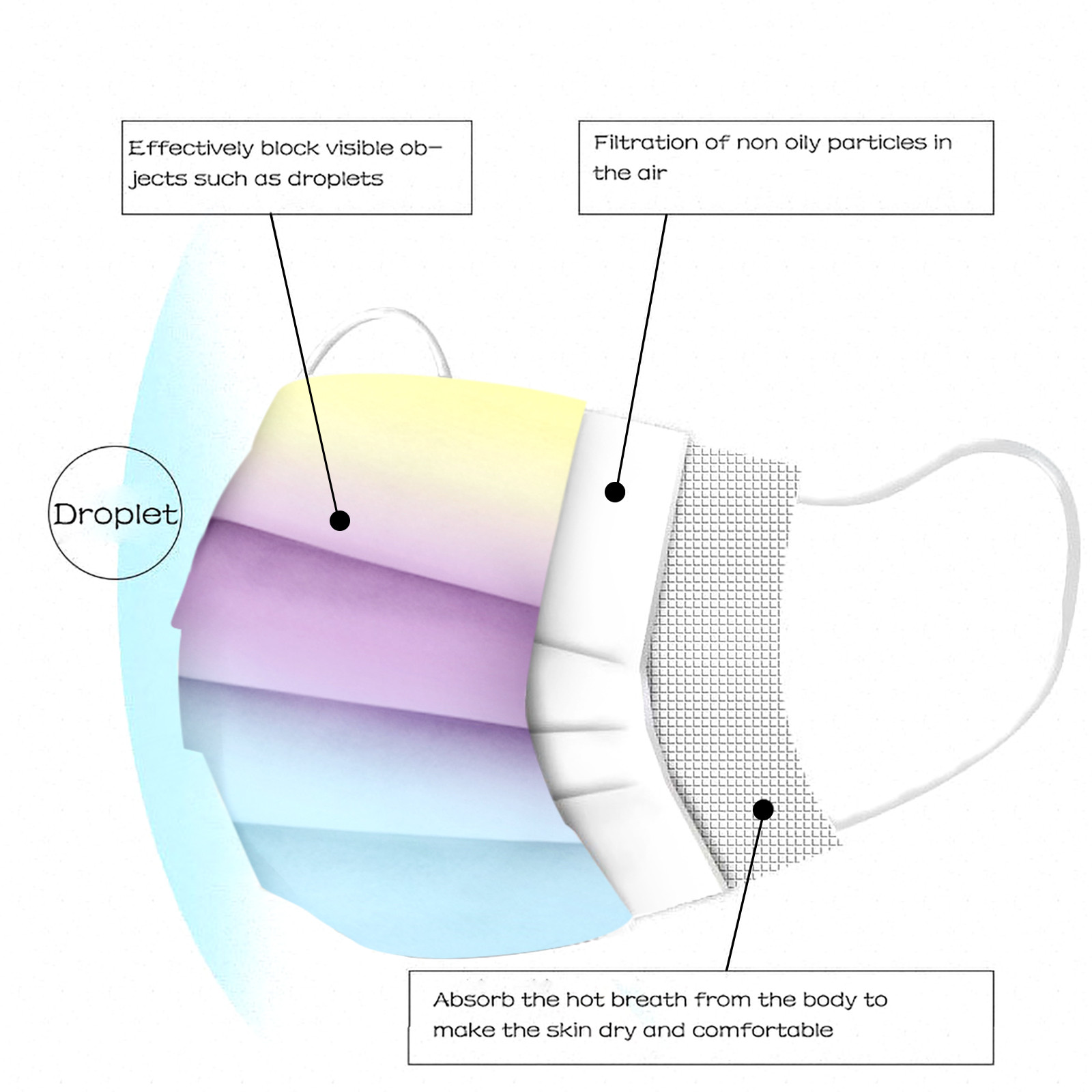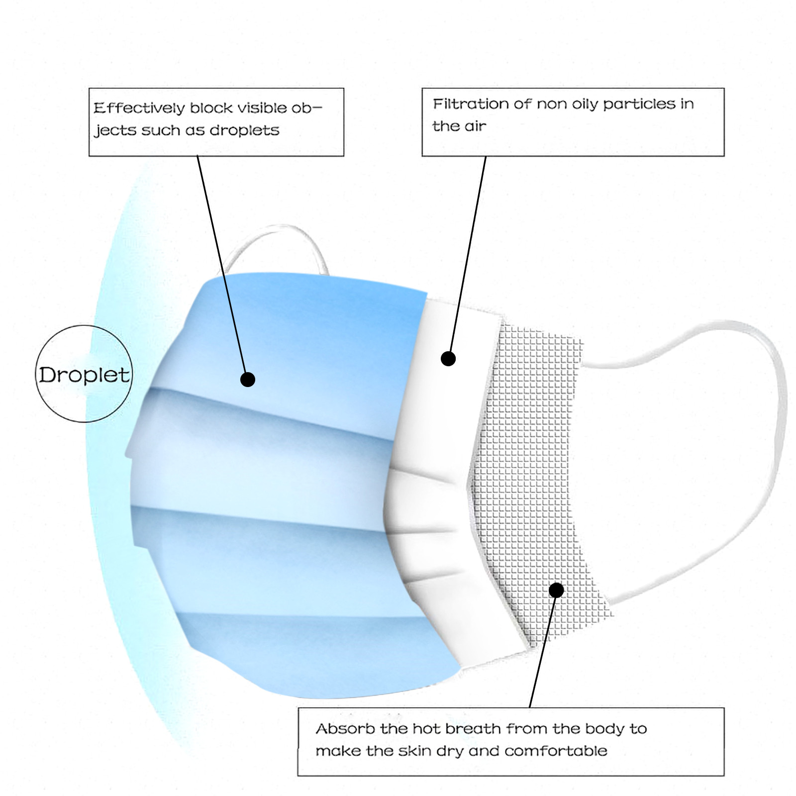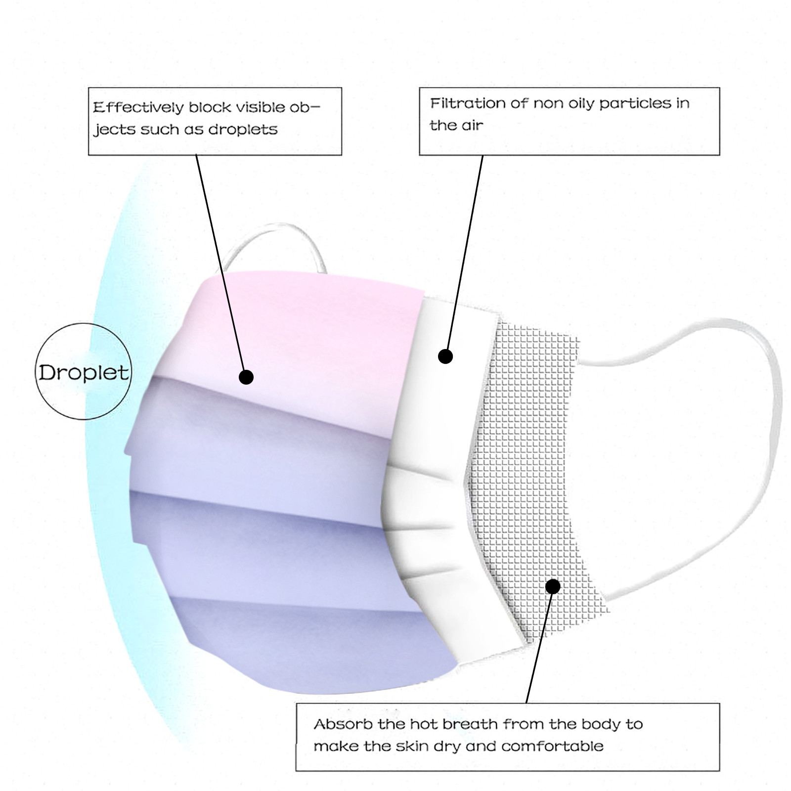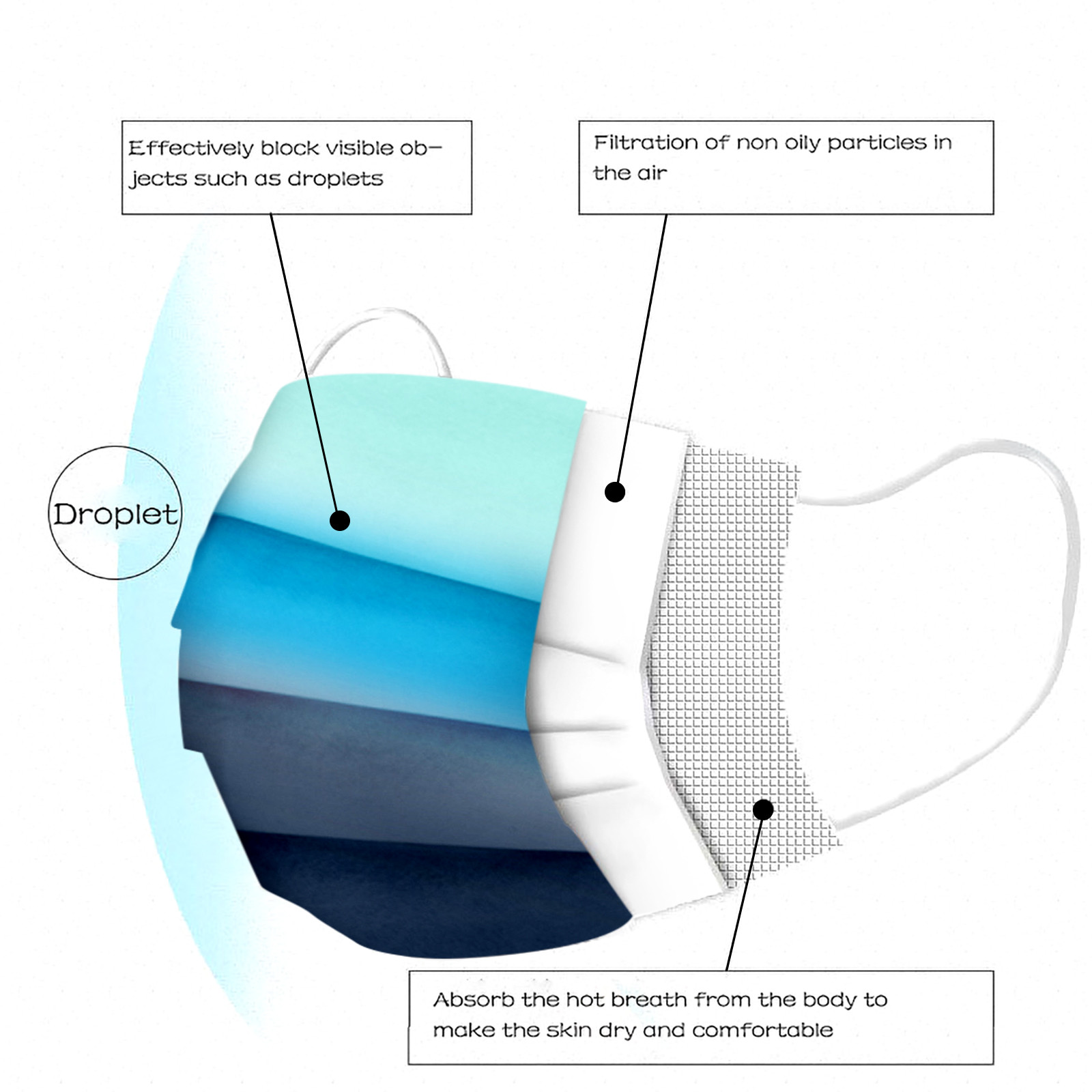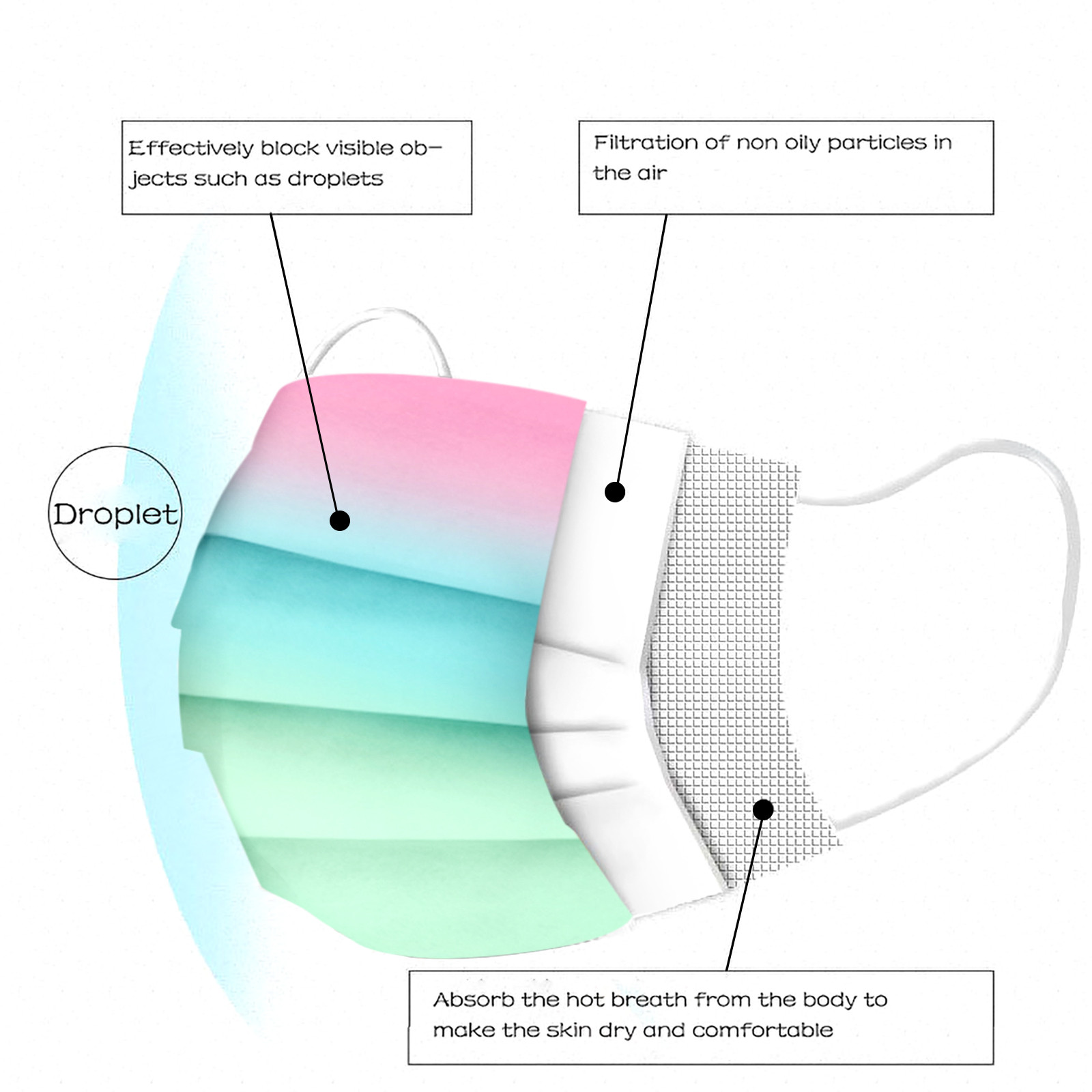 3 слоя Нетканая одноразовая маска изготовлена из 3 слоев нетканого материала, он безопасен для здоровья и безопасный для вас, чтобы использовать.