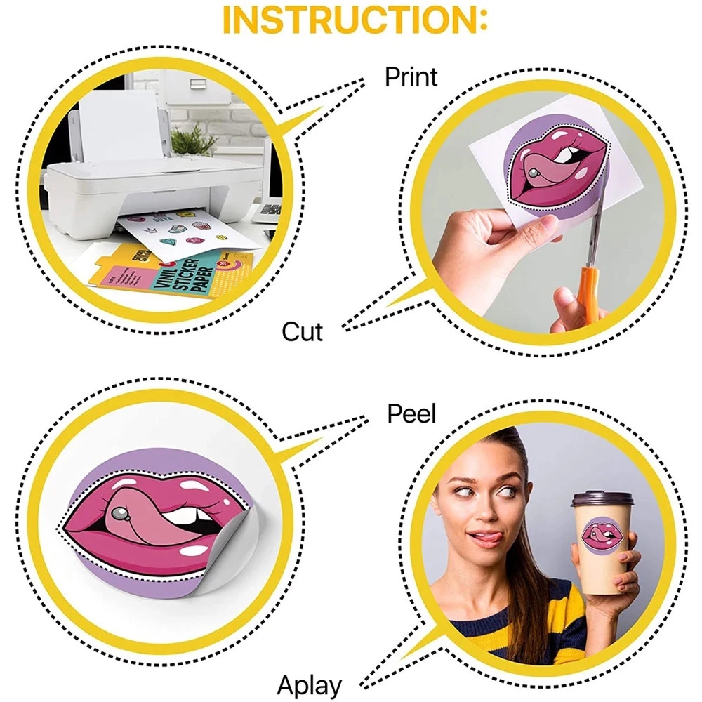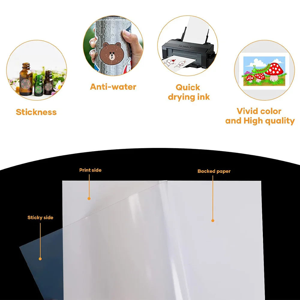 10/20 Вт, 30 Вт/40/50/100Sheet Виниловая наклейка для печати Бумага A4 наполовину прозрачный водостойкая клейкая бумага Бумага поделки этикетки для струйного принтера
