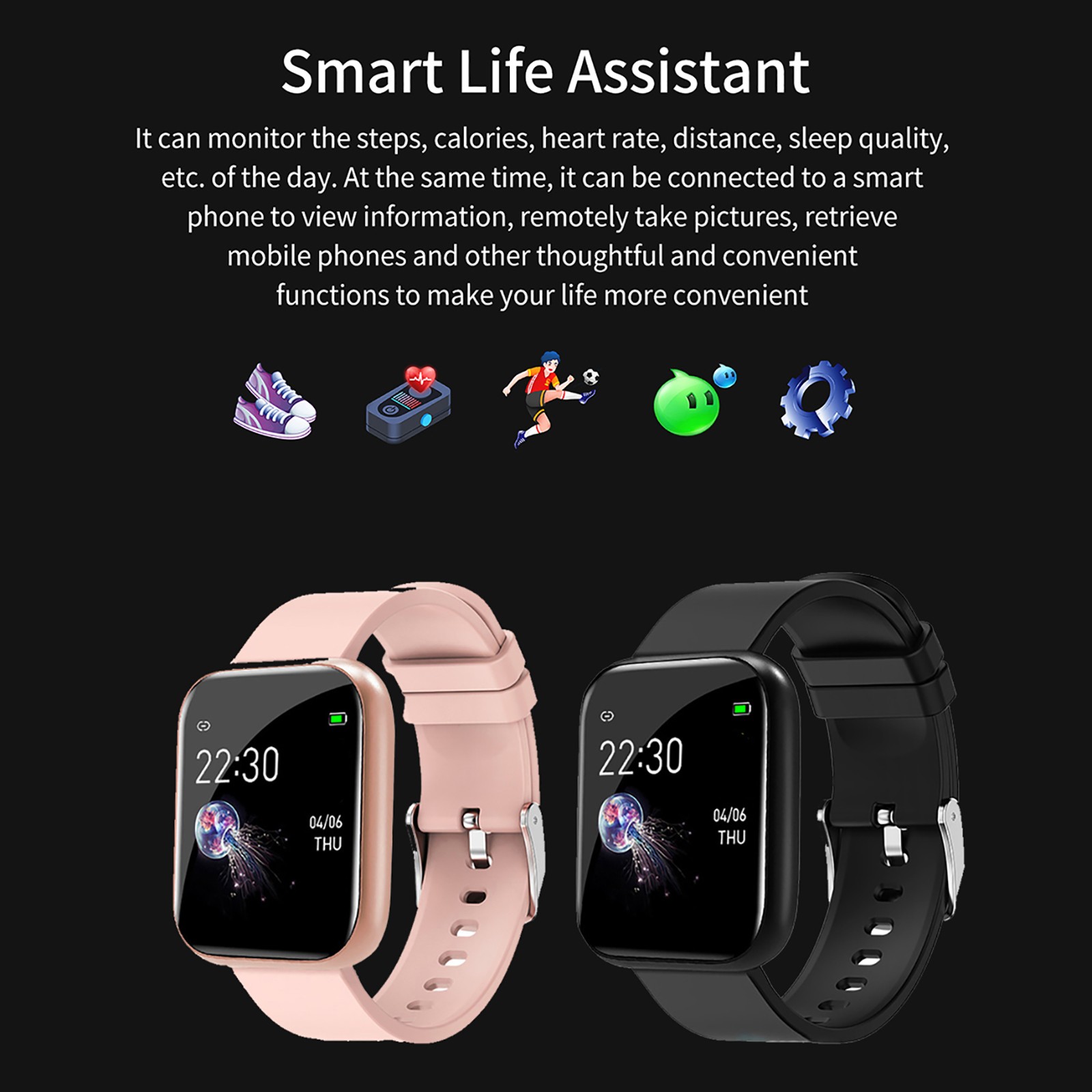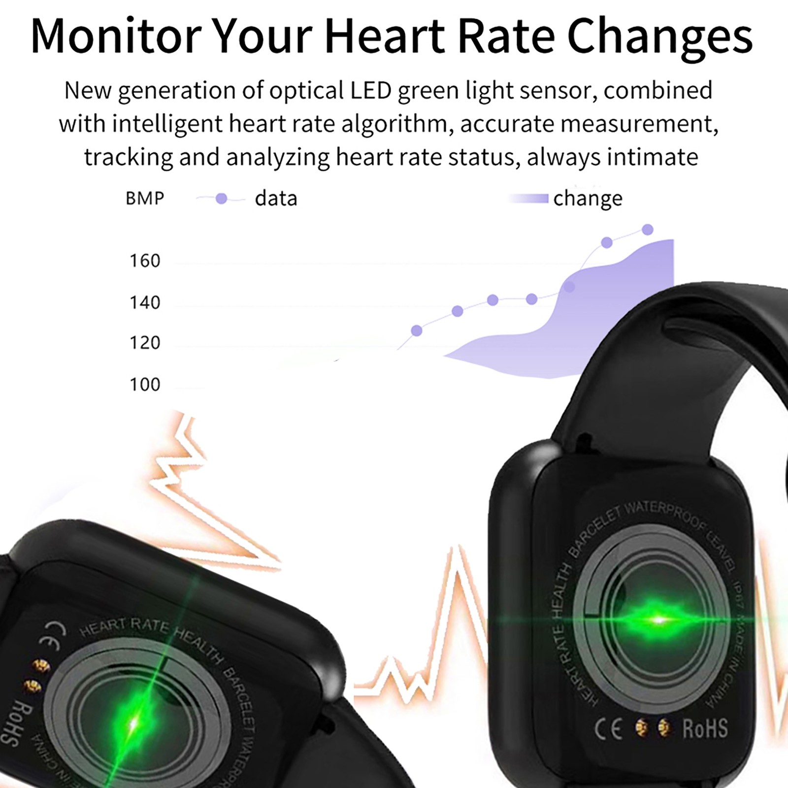 1. Based on pulse conduction rate technology, heart rate, blood pressure, and blood oxygen monitoring are measured by the optical sensor of the bracelet and displayed on the screen 2. Multiple exercise modes, record exercise data in real time without the mobile phone. Sports health data can be synchronized to the App, and you can view your own sports health data in the App. 3. Vacuum plating in the metal furnace, anti-scratch treatment, enhance the metal texture and hardness of the watch, anti-squandering and wear-resistant 4. The bracelet has a built-in exclusive custom dial, which can be changed by pressing and holding the screen. You can match different occasions and moods 5. After rigorous testing, it is waterproof and stress-free in daily life, raining, washing hands, splashing waterParameters: