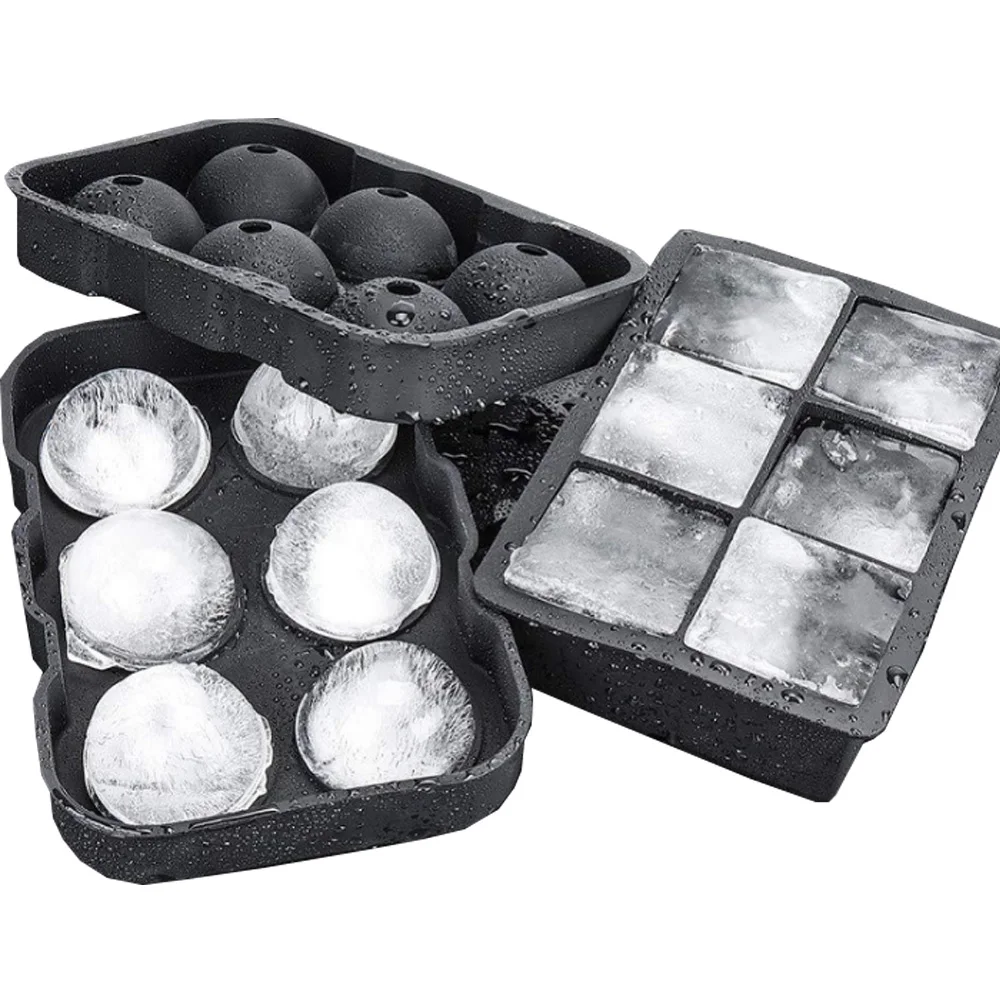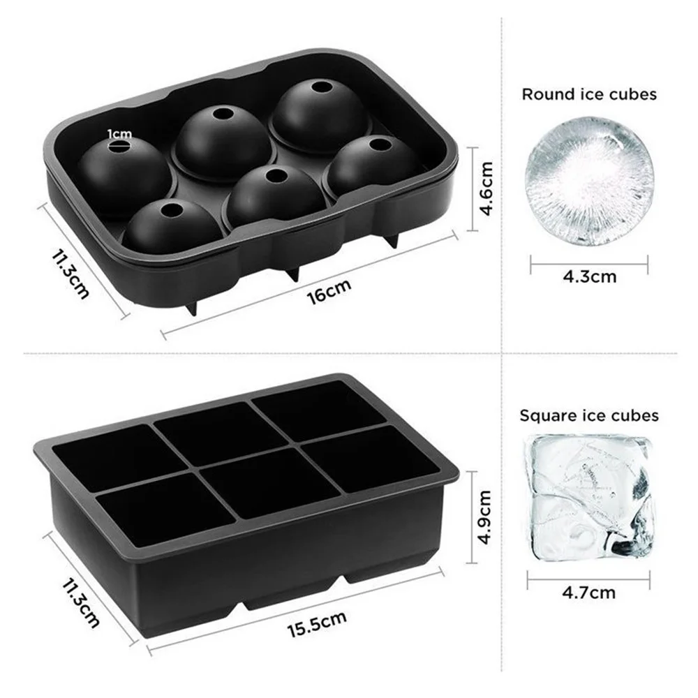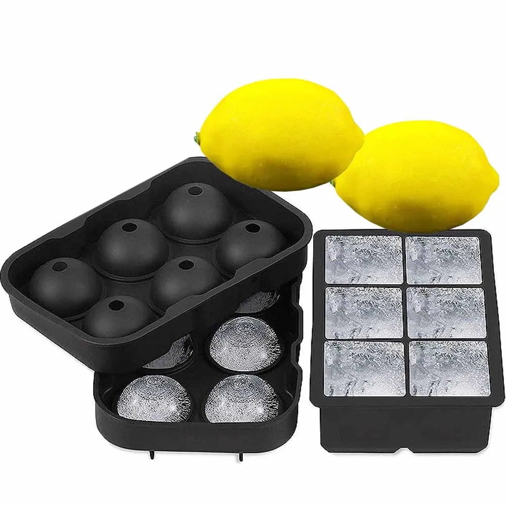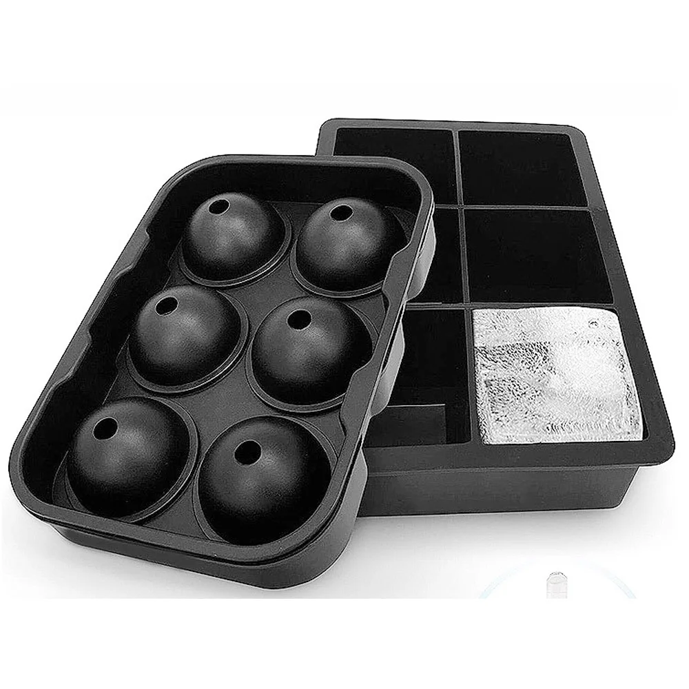 6 ячеек ледяной кубик лотки силиконовая комбинированная форма набор из 2 квадратных прессформы сферы виски льда и шариков с крышкой многоразовые BPA бесплатно