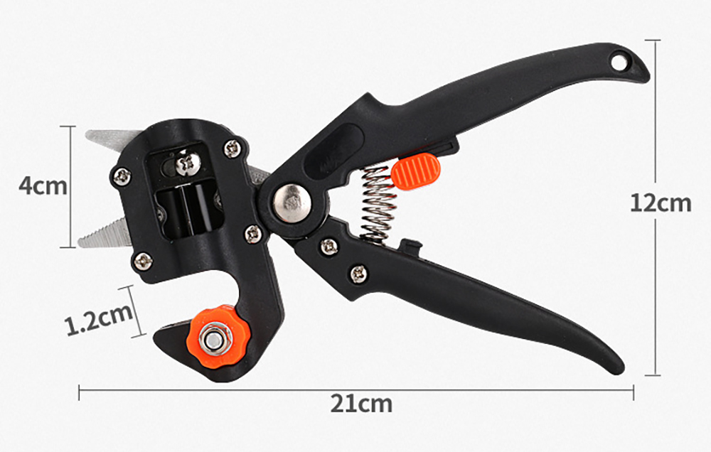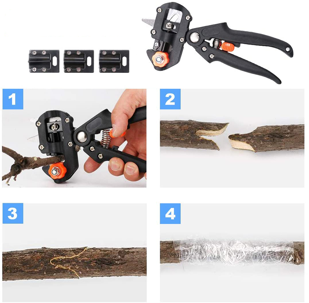 1: универсальный инструмент для прививки выполняет три типа прививок (V-graft, Omega-graft и U-graft), а также обрезки веток.