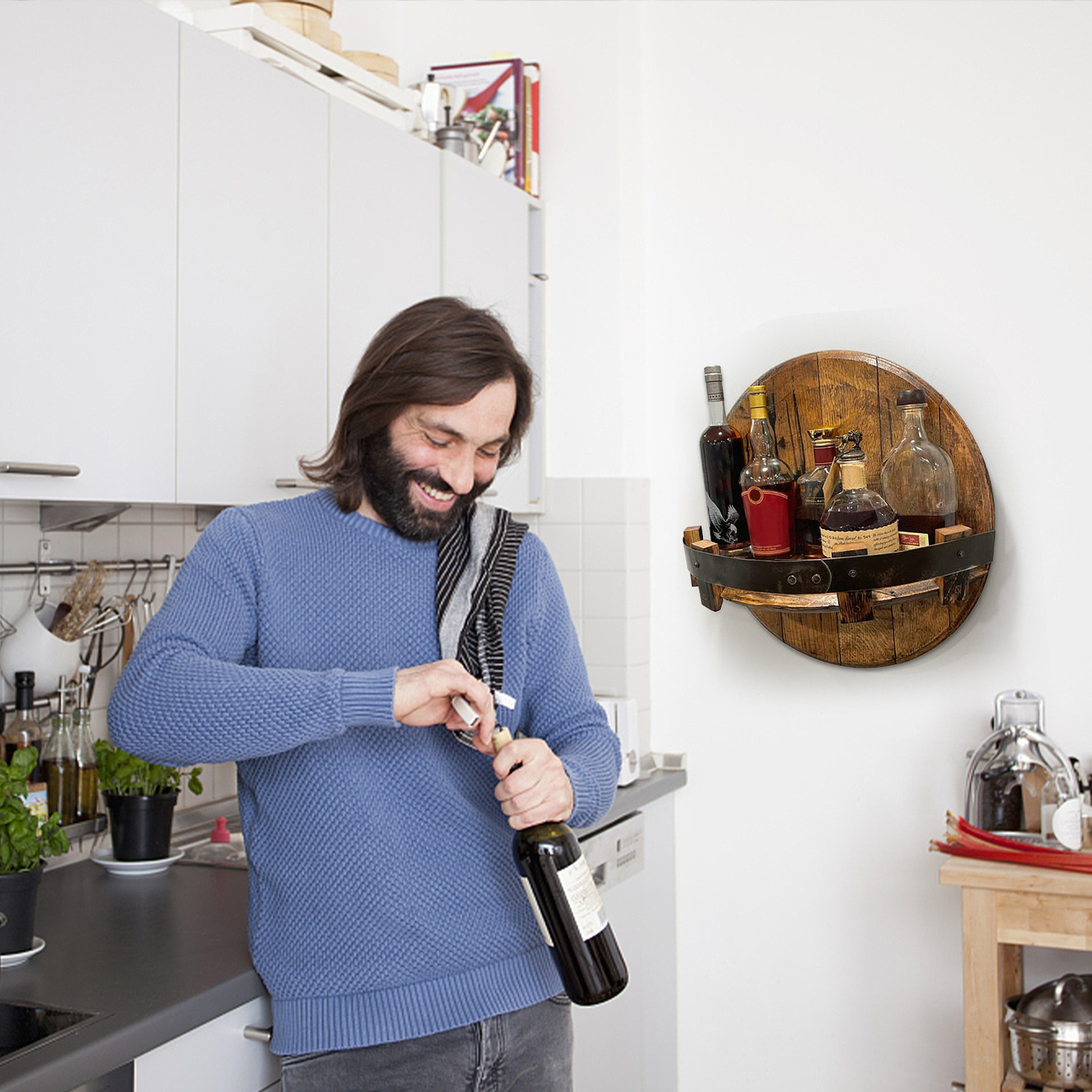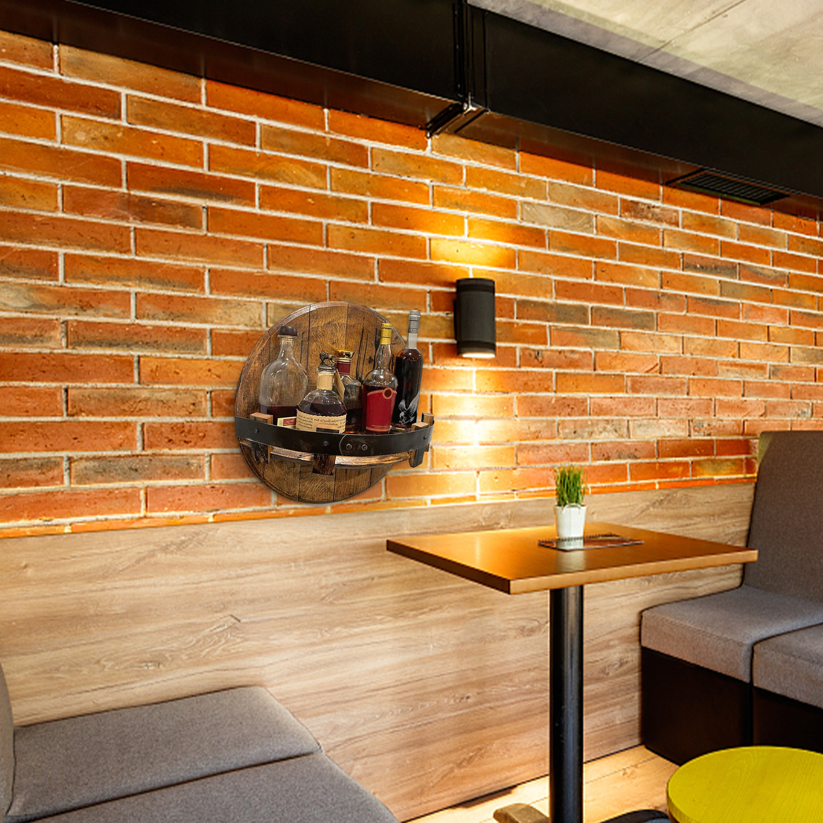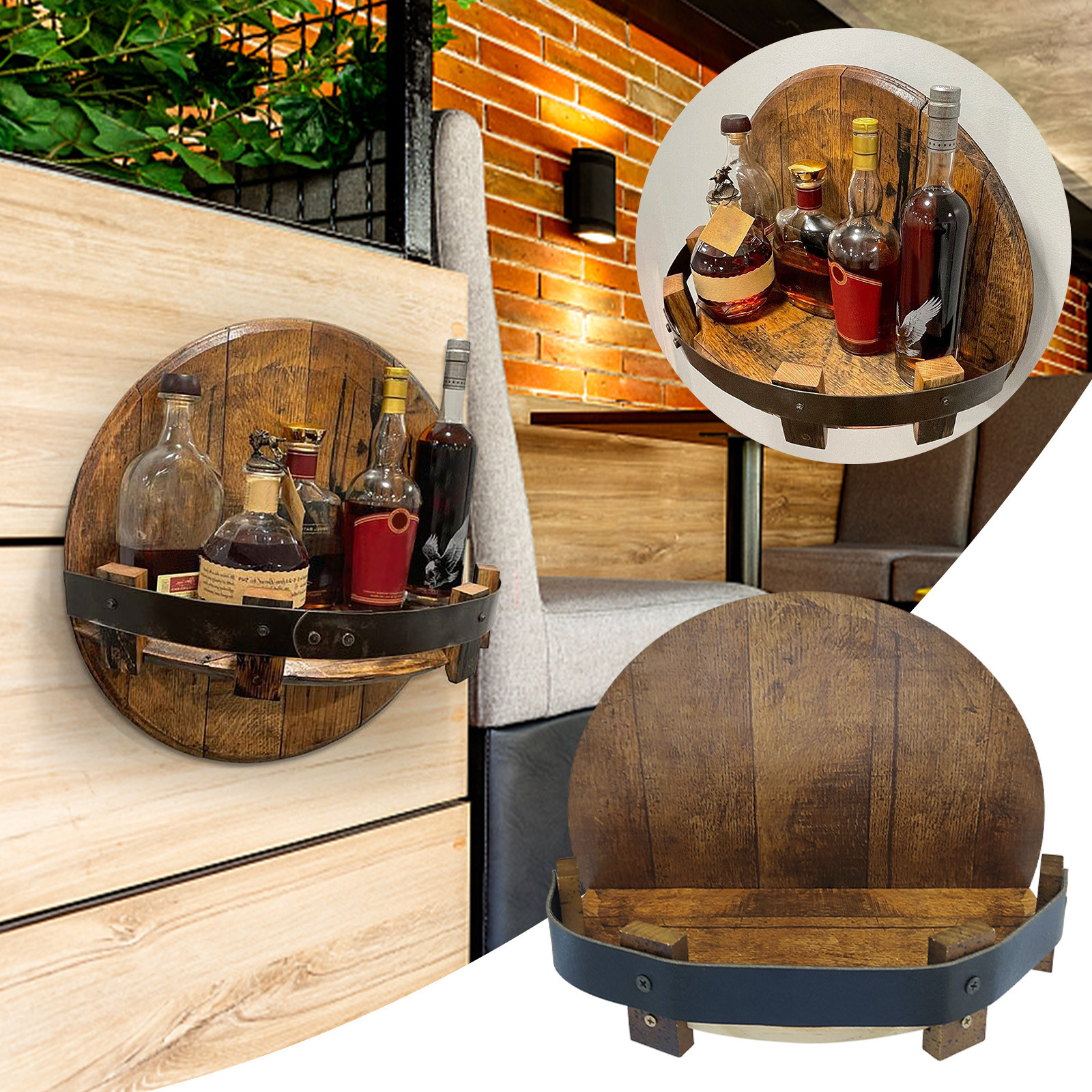 Область применения-настенная Винная стойка, винная бутылка Стойка, настенная Ретро круглая Винная стойка, витрина для виски, Семейный кухонный барный стеллаж для украшения.