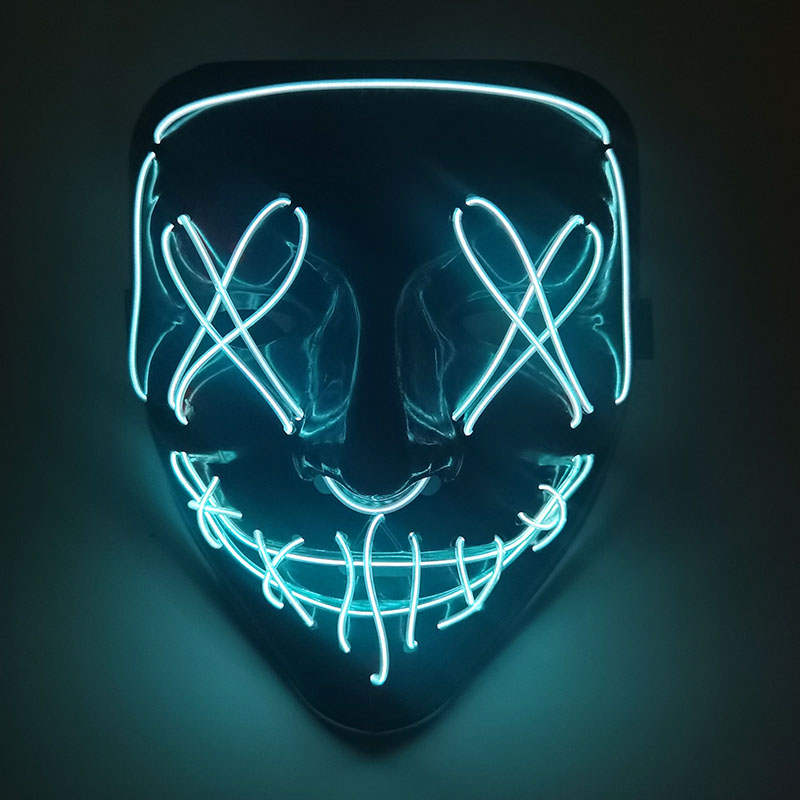 1. Эта маска изготовлена из высококачественного ПВХ и El холодный светильник, без УФ-повреждений, без побочных эффектов на тело человека.