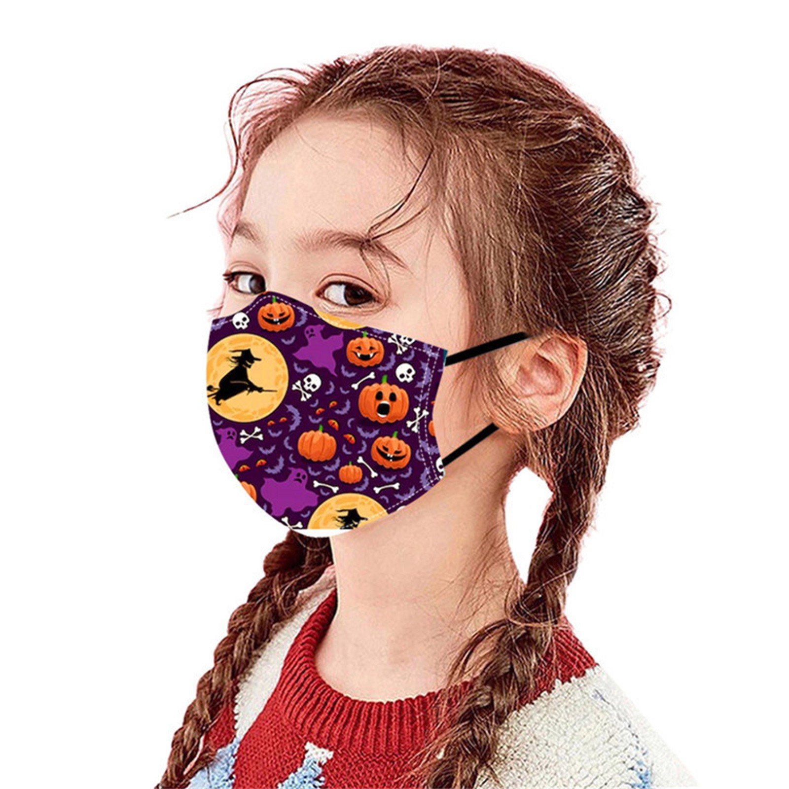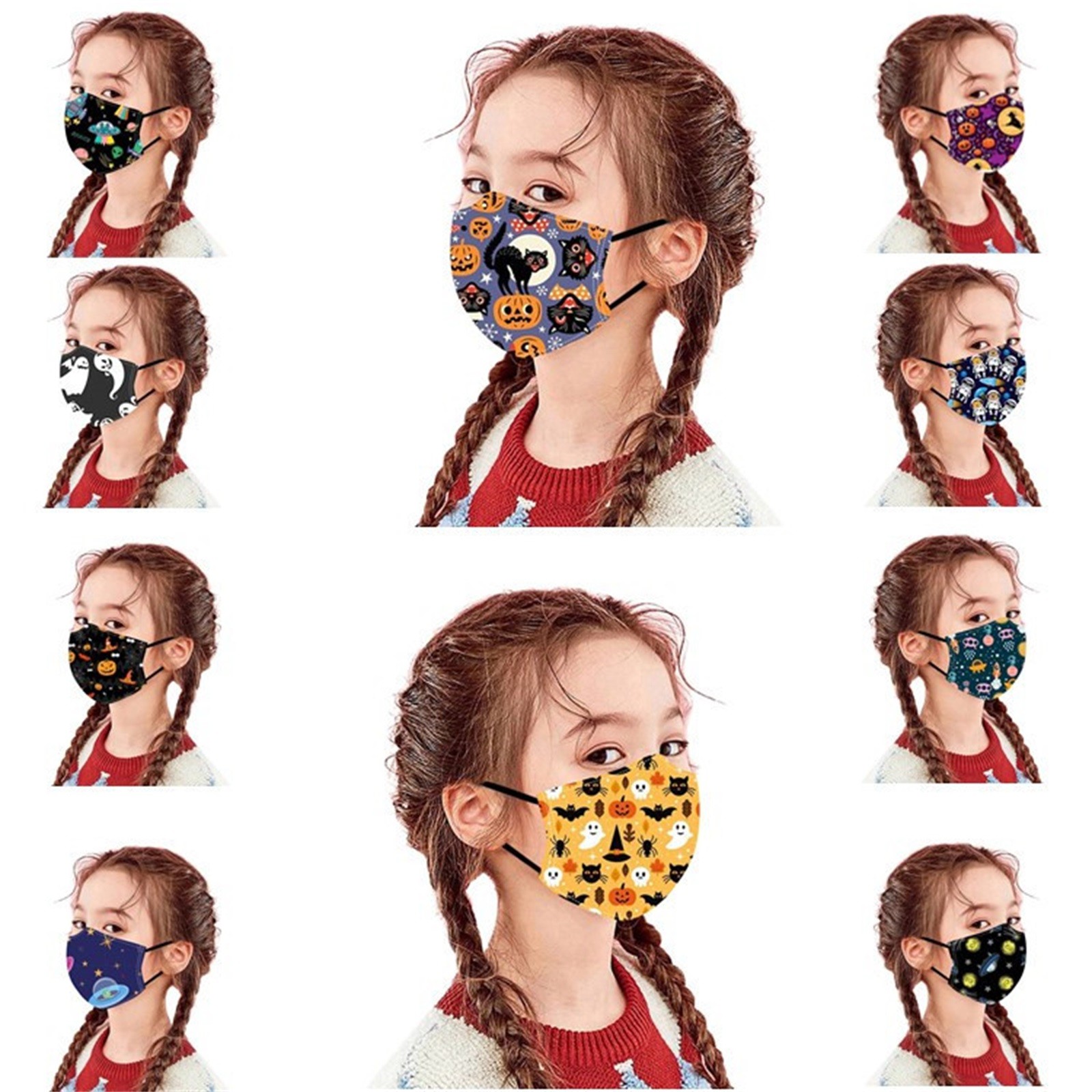 1 шт. детская многоразовая моющаяся дышащая маска для лица с принтом на Хэллоуин