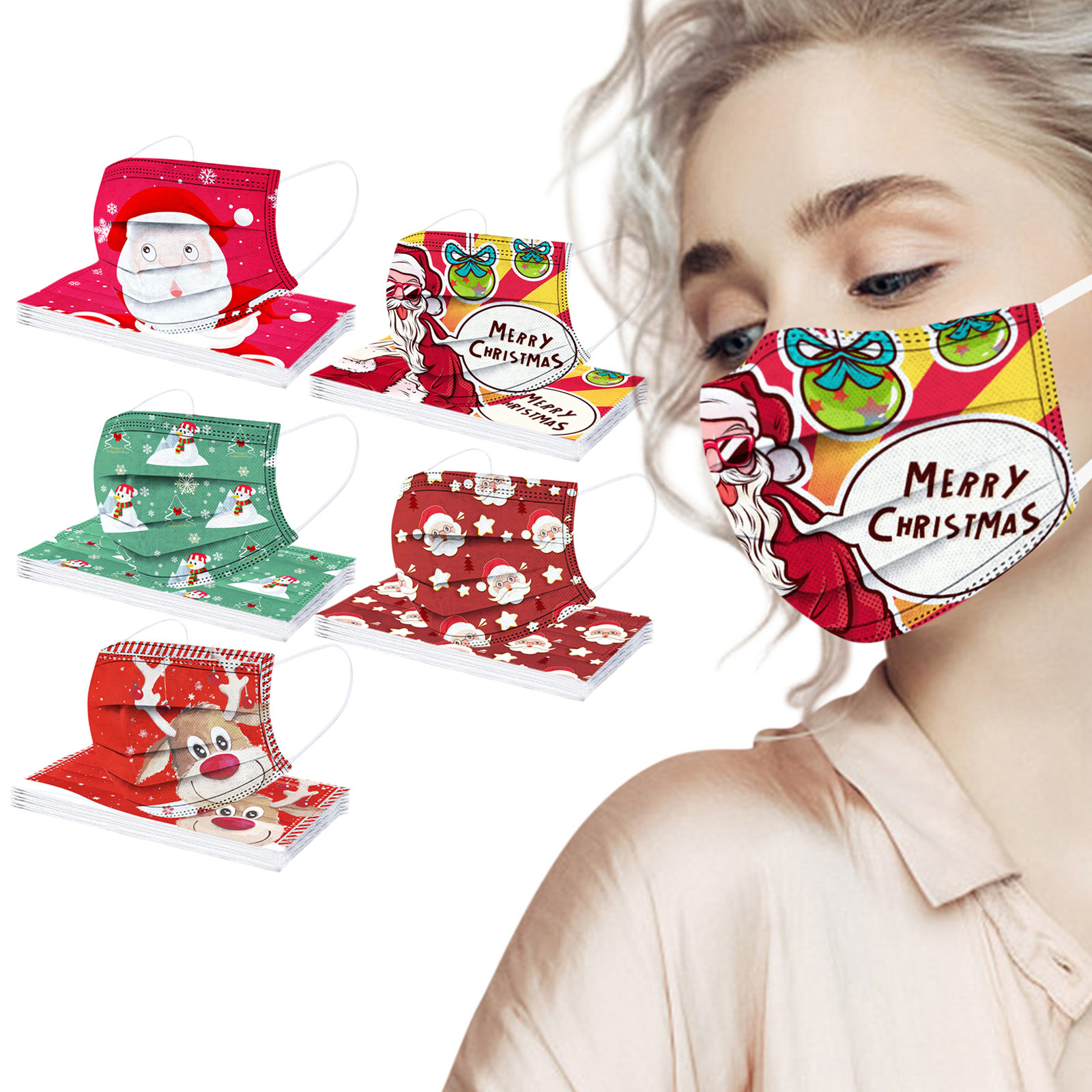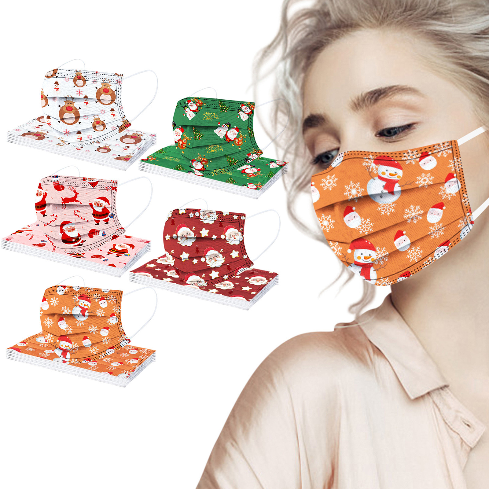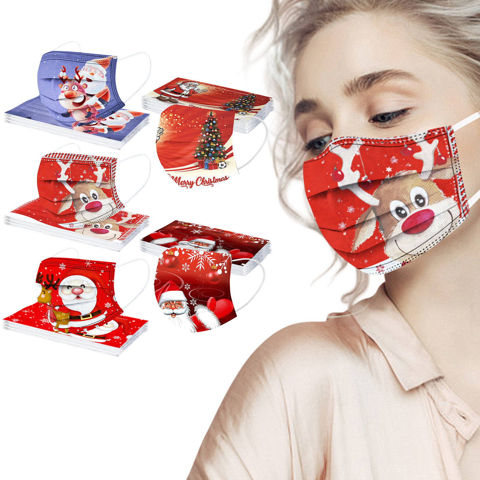Взрослая Мужская Женская Рождественская Детская одноразовая маска для лица промышленная 3Ply Ушная петля 50 шт маска