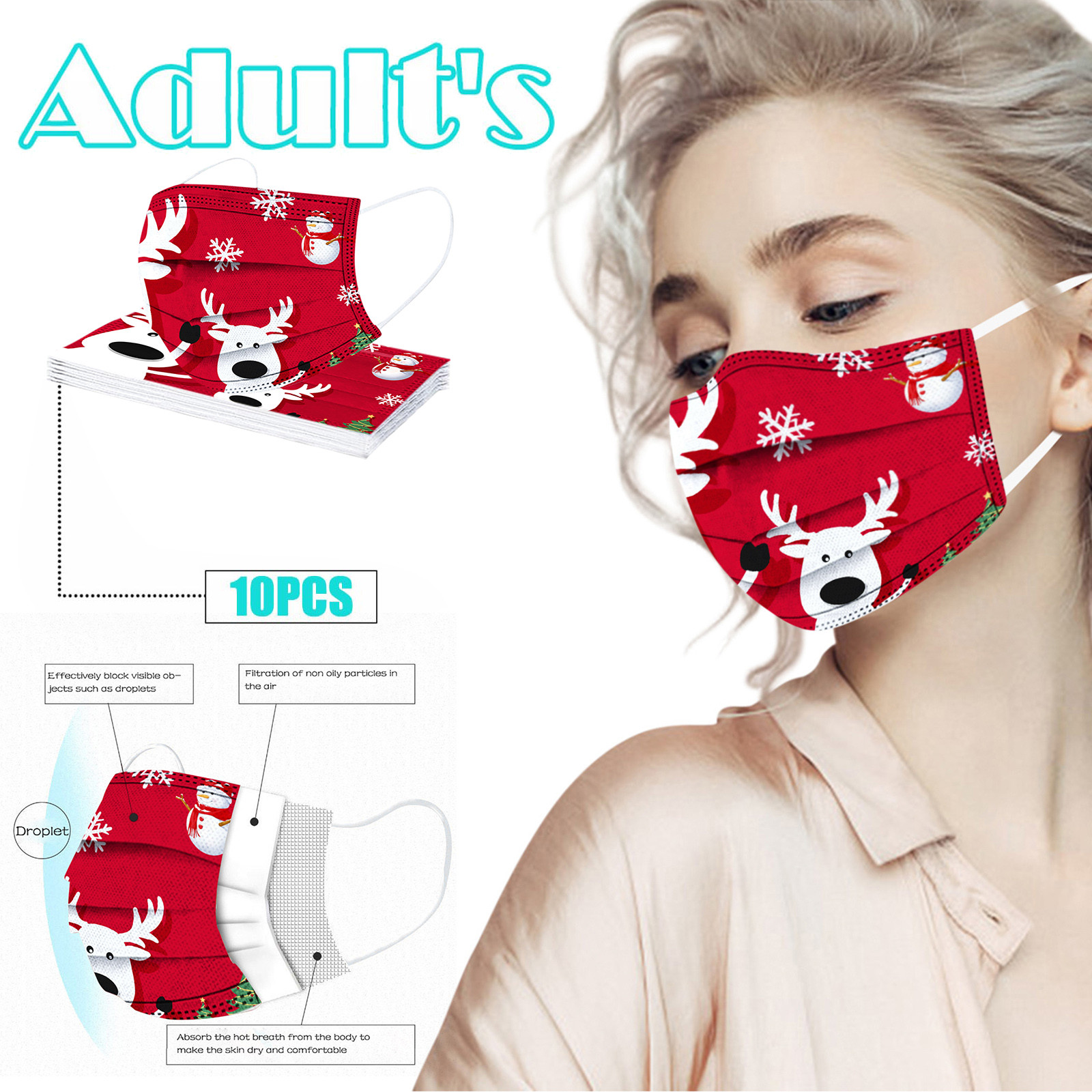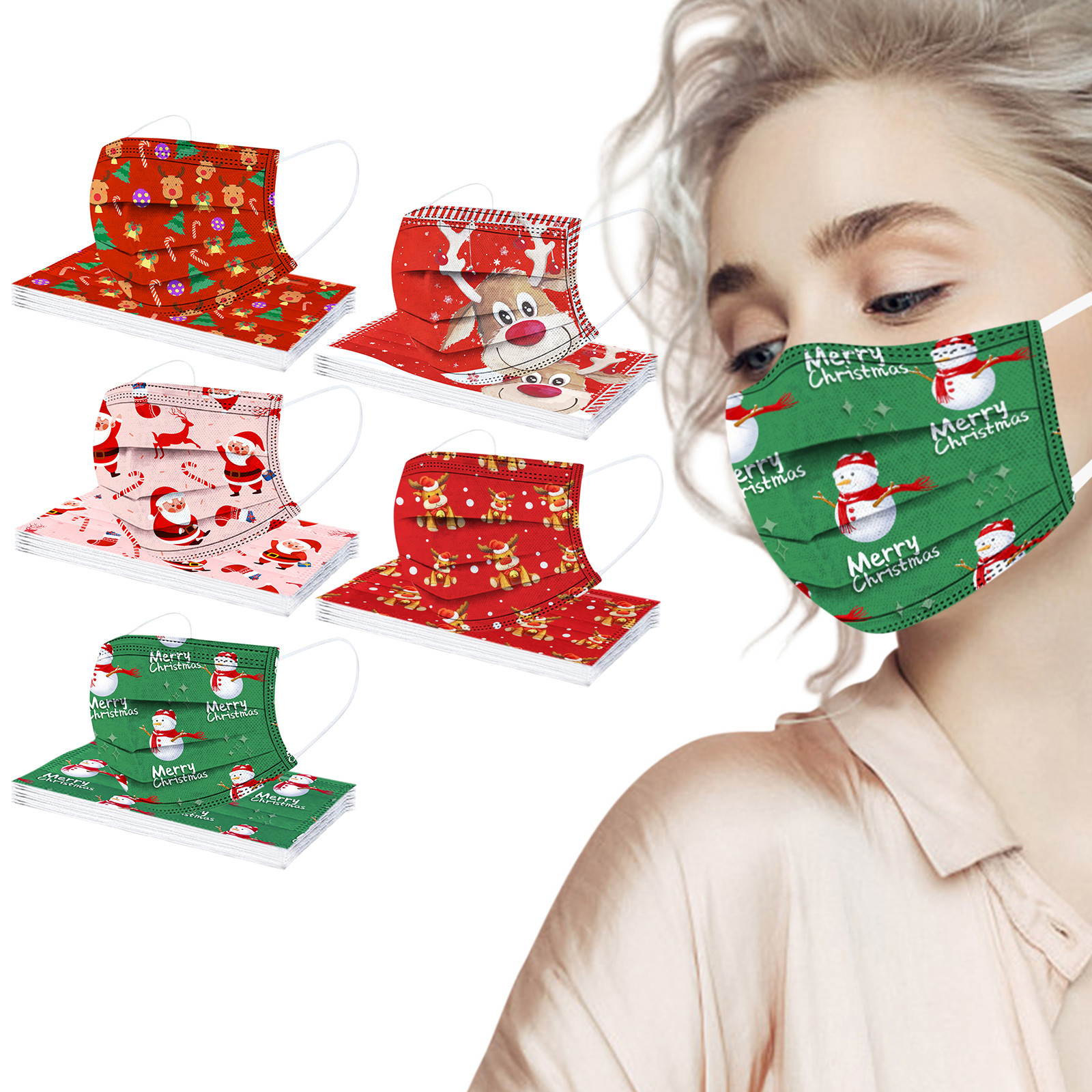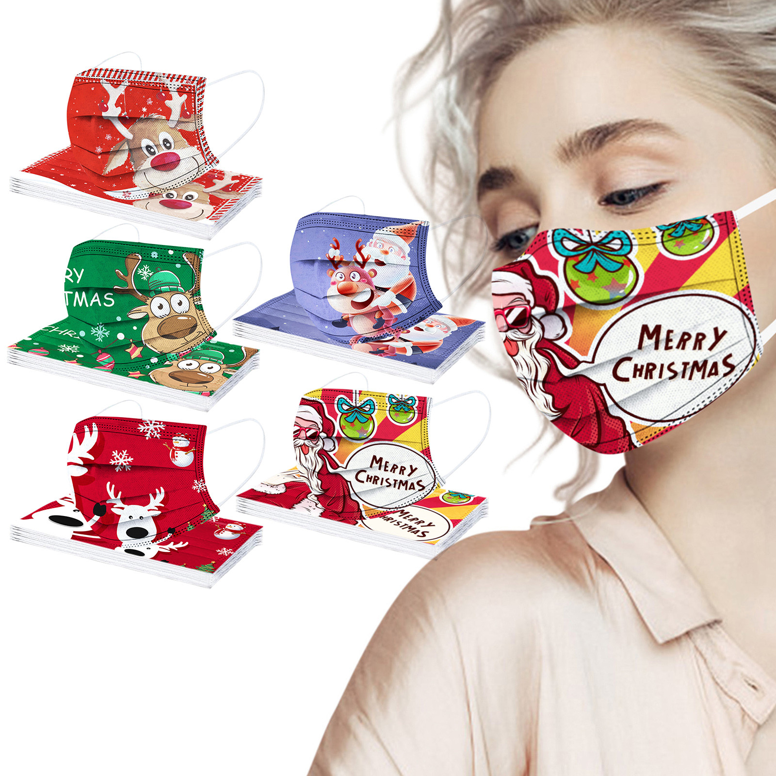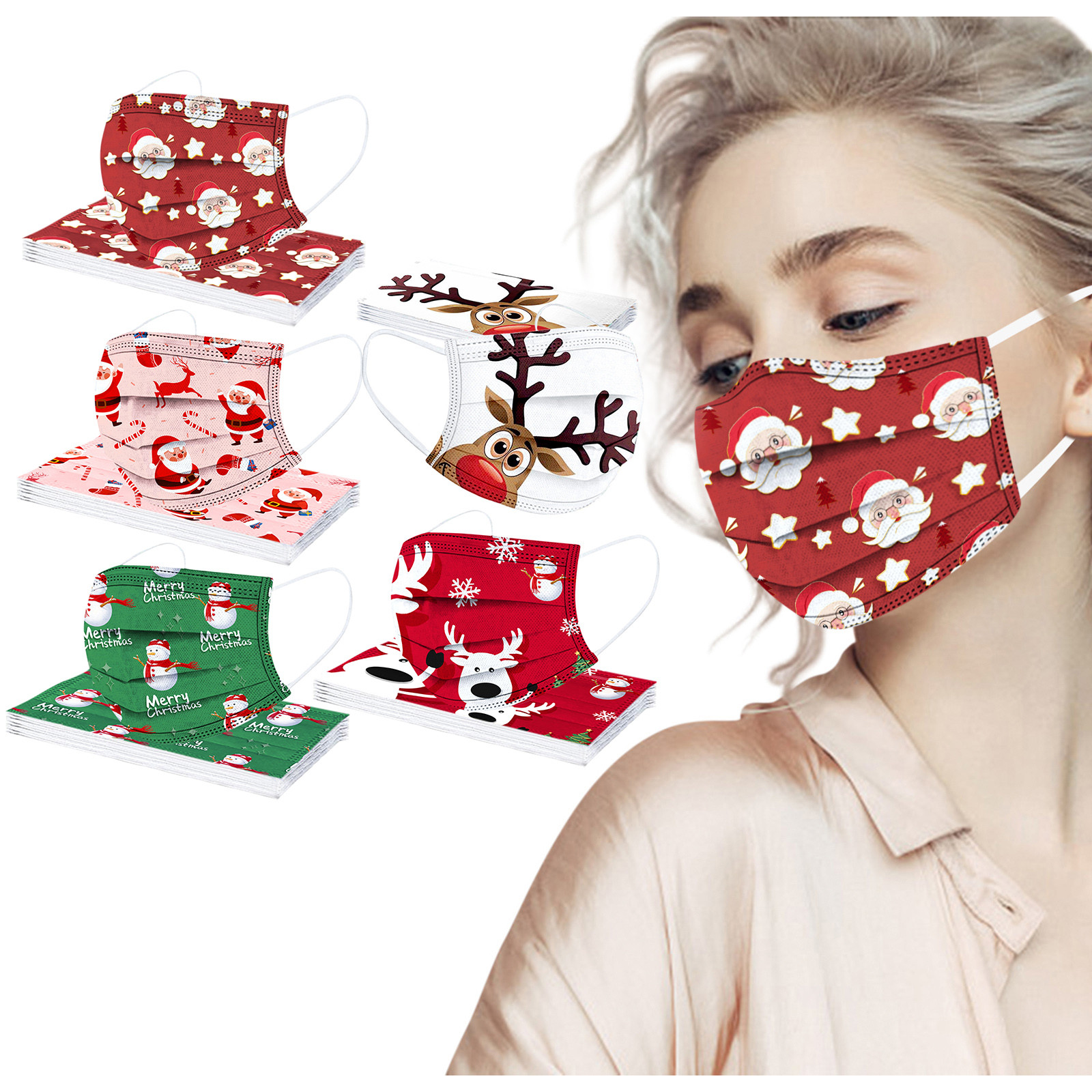 Взрослая Мужская Женская Рождественская Детская одноразовая маска для лица промышленная 3Ply Ушная петля 50 шт маска