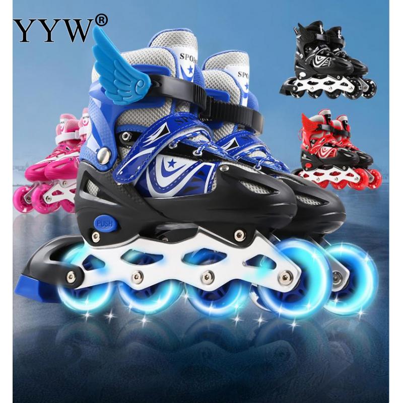 Новинка, 4 колеса, регулируемые детские роликовые коньки, обувь для скоростных коньков, профессиональные коньки для мальчиков и девочек