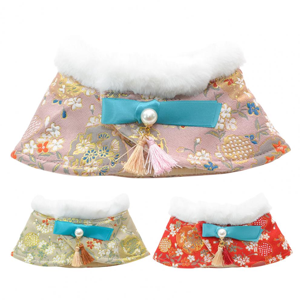 Шарф для домашних животных имеет китайский стиль костюма Тан, искусственный жемчуг и декор кисточкой, который выглядит элегантно и красиво и сделает вашего питомца привлекательным в толпе.