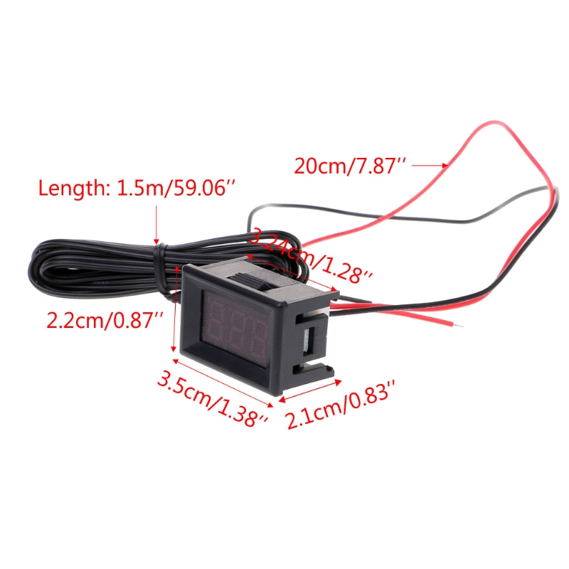 Светодиодный цифровой термометр Автомобильный датчик температуры холодильника-40 ~ 120C градусов DIY Характеристики: Напряжение питания: DC4.0 ~ 30 В (рекомендуемый источник питания менее 20 в, более 20 в может настраивать предел сопротивления 1 к) Температура диапазон: -40 ℃ ~ 120 ℃, минимальное Разрешение 0,1 ℃. Стандартный водонепроницаемый датчик температуры: 1,5 метров в длину, PH2.0 интерфейсом. Размер отверстия для установки: 32,4 мм x 21 мм Посылка включает: 1 шт. цифровой термометр