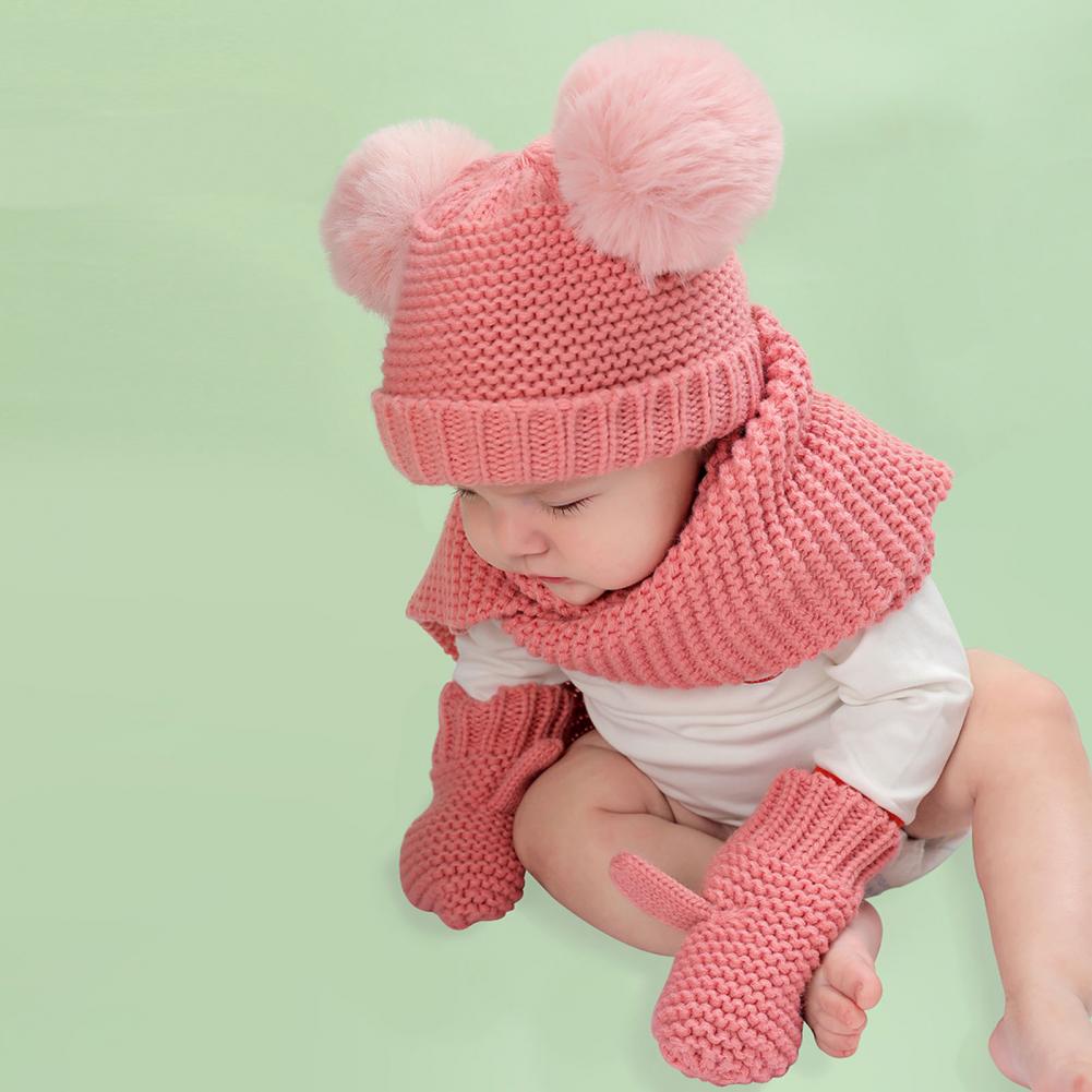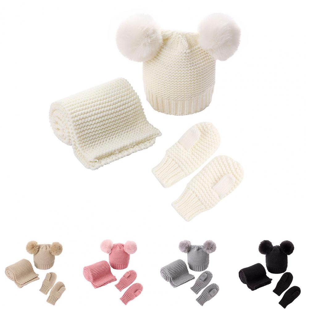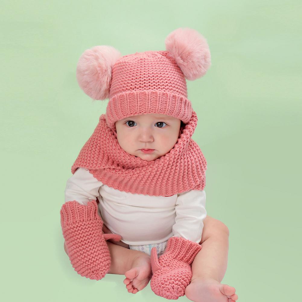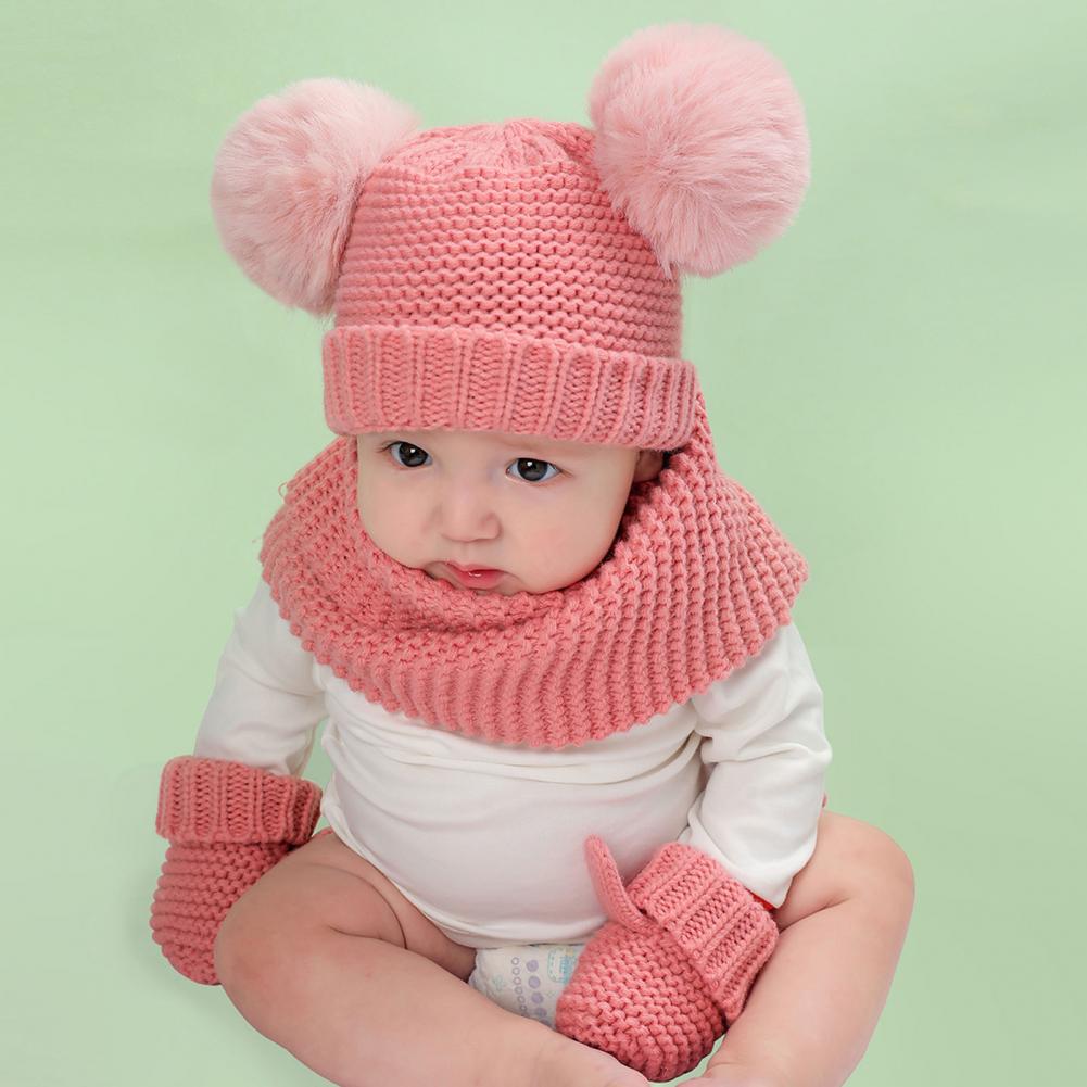 1 комплект, высокое качество, зимняя шапка, шарф, Экологически чистая Толстая шапка, шарф, перчатки, искусственный шар, детская шапочка, шарф, перчатки