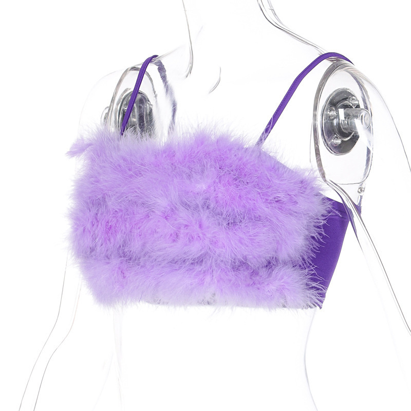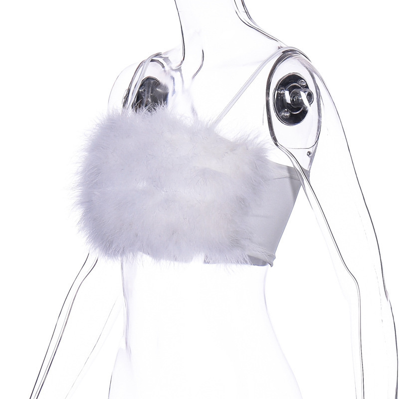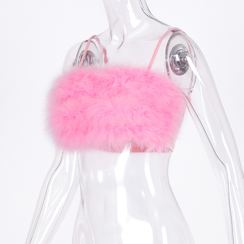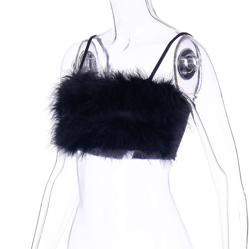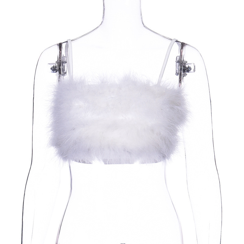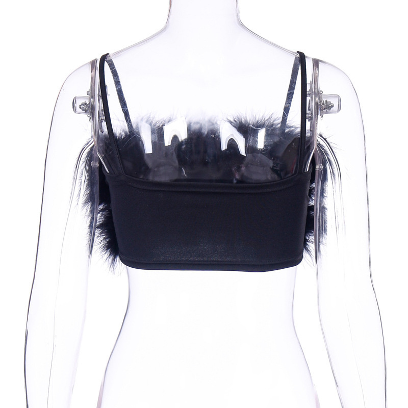 Женский топ без рукавов с искусственным мехом на бретельках Y2K, укороченный топ без рукавов для клуба, уличная одежда