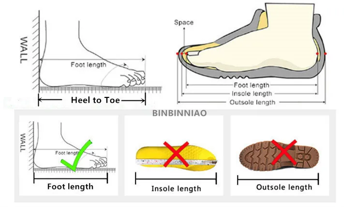 4. Пожалуйста, не измеряйте длину стельки или длину подошвы вашей обуви, она отличается от длины стопы.