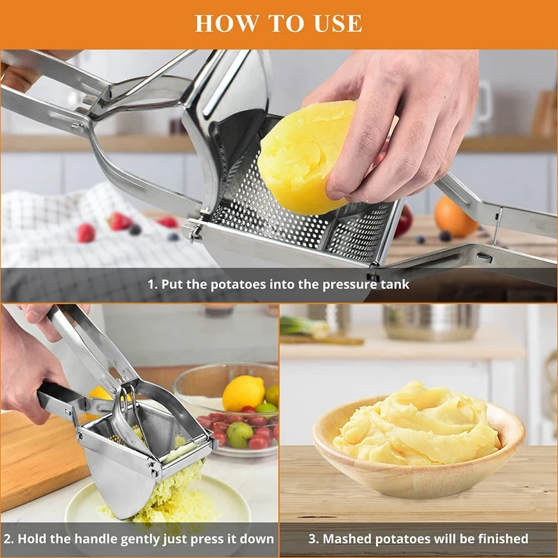 [Качество картофеля RICER]: хорошо сделано из высококачественной нержавеющей стали, прочная конструкция, сделанная до конца.