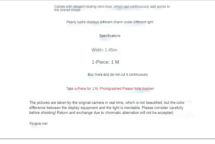 Order "1piece" = whole piece: 1meter *1.45meter