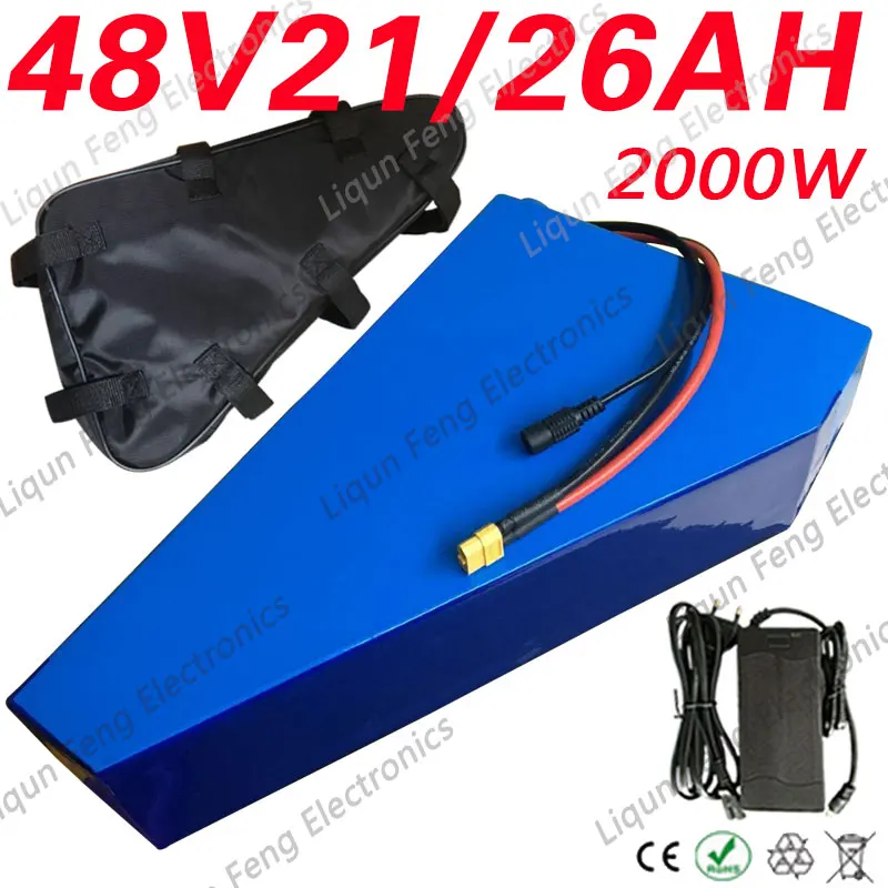 48V 2000W 25Ah батарея для электрического велосипеда 48V 20Ah треугольная батарея с сумкой 50A BMS 54,6 V 5A зарядное устройство Бесплатная доставка.