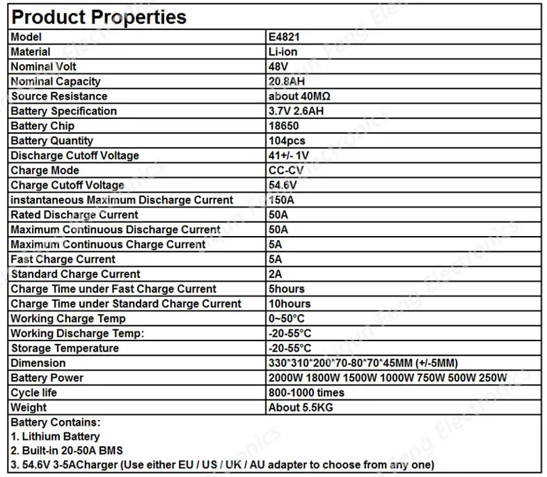 Батарея подходит для мощности двигателя 250 Вт 350 Вт 450 Вт 500 Вт 650 Вт 750 Вт 800 Вт 1000 Вт 1500 Вт 2000 Вт (пожалуйста, отметьте мощность двигателя перед покупкой. Спасибо!)