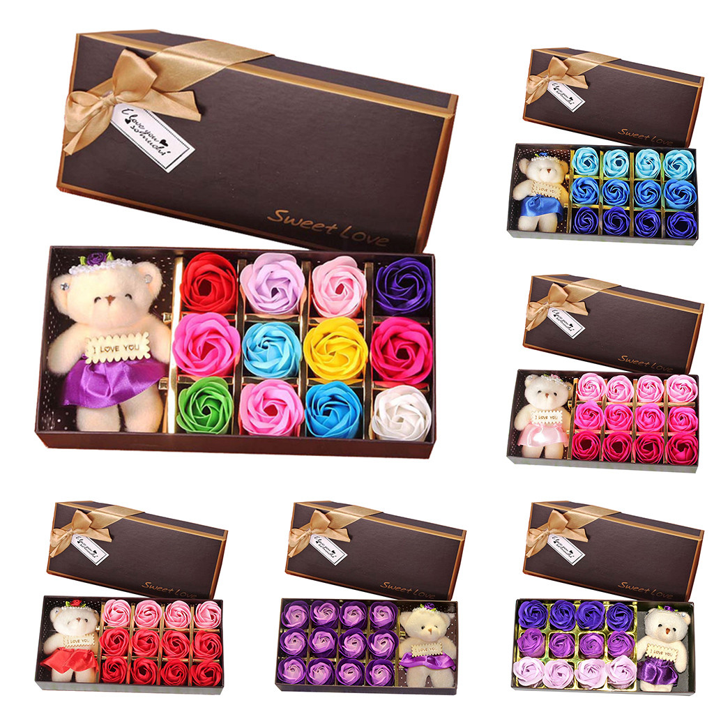 Новый подарок на день Святого Валентина, Подарочная коробка с мишкой, подарок с розами, маленький подарок, 12 мыльных цветов