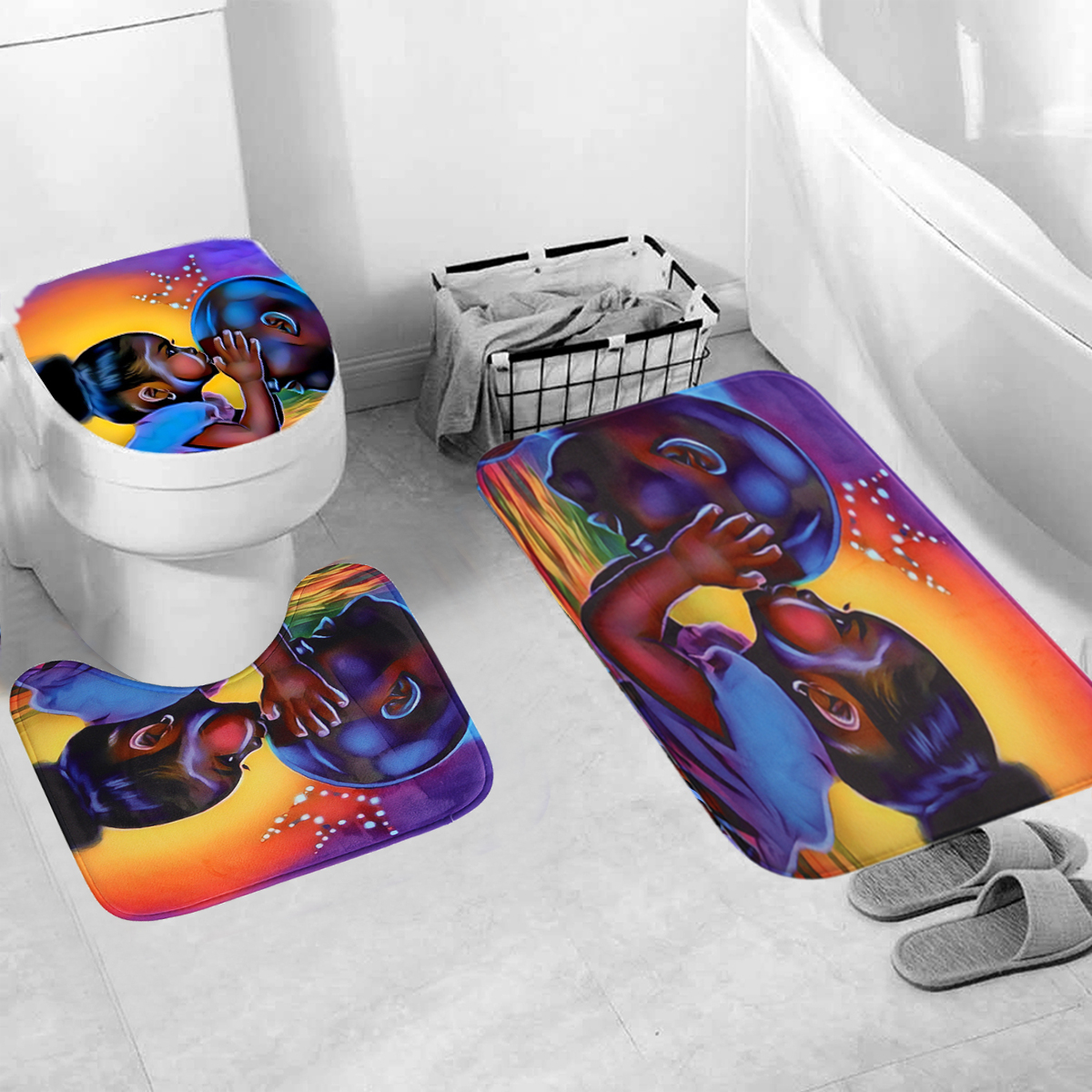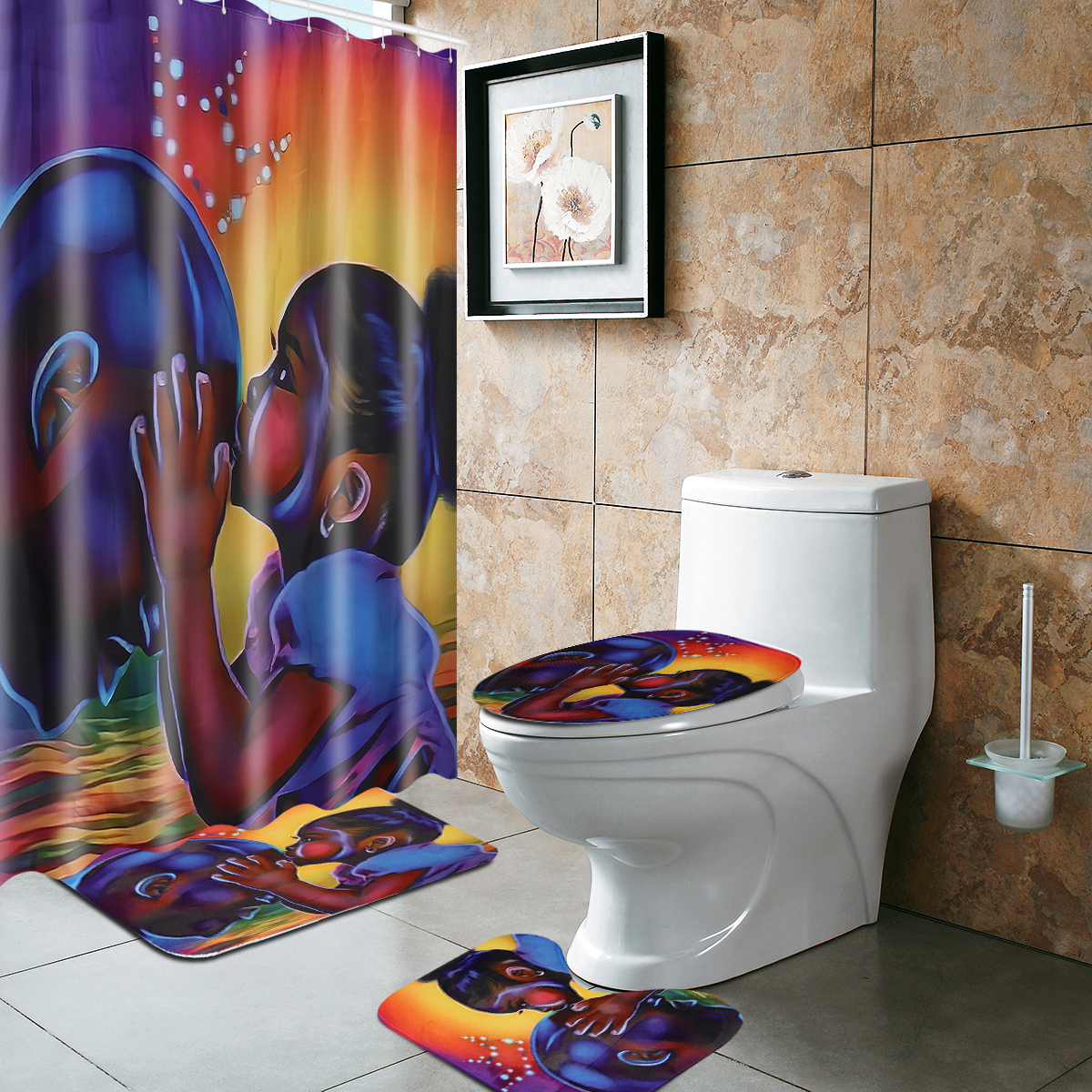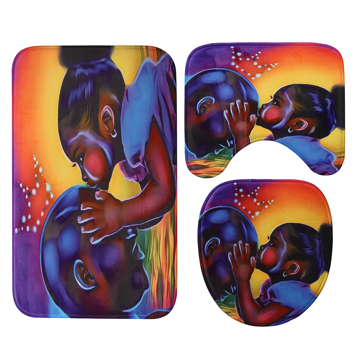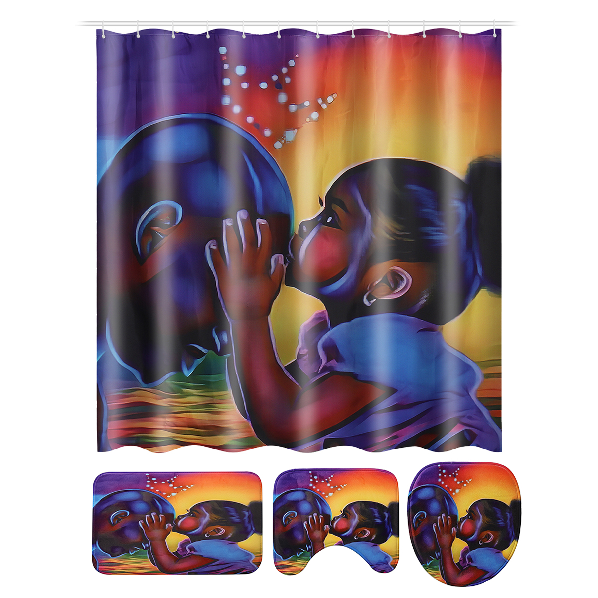 -Фланелевая ткань, очень мягкая на ощупь и удобная, сетчатая подошва из ПВХ, Нетоксичная, без запаха, не заплесневелая. -Легко впитывает воду и пыль, хорошая устойчивость к скольжению; -Легко чистить, можно мыть непосредственно стиральной машиной или руками, не линять и не выцветать, задняя часть избегается прямых солнечных лучей. -Очень мягкая ткань высокой плотности, удобная, Экологичная, хорошая вентиляция. Спецификация: Материал: Фланель + поливинилхлорид (ПВХ) Сетчатый низ + полиэфирная ткань Основной Цвет: разноцветный Рисунок: Африканская девочка Размер душевой занавески: 180x18 0 см/70,87x70,87" Размер из трех частей: 45x7 5 см/17,72x29,52" 35x37, 5 см/13,78x14,77" 45х37. 5 см/17,72x14,77" Толщина (приблизительно): 0,8 cm ± 5% Посылка включает в себя: Тип A: 1 х коврик на пьедестал : Крышка для унитаза-1 шт. : Коврик для ванной-1 шт. Тип B: 1 занавеска для душаЗдравствуйте . есть у вас 4 шт. ? ... Читать отзыв полностью...