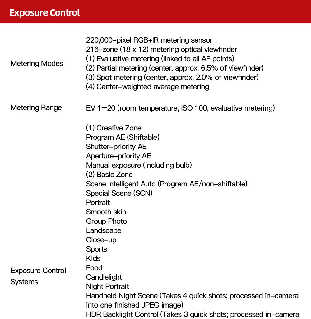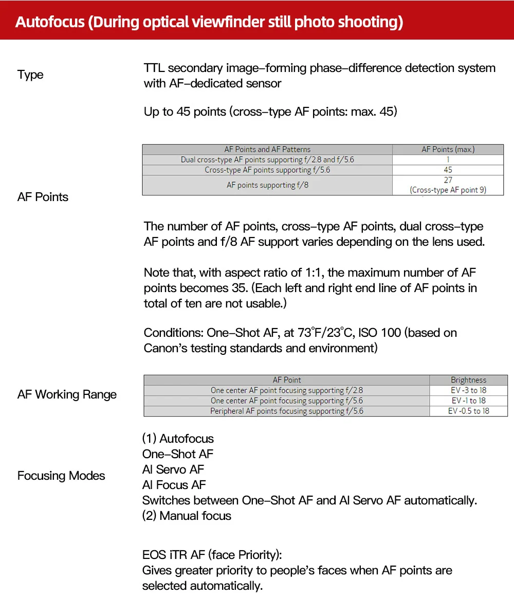 EOS Rebel T8i камеры оснащен усовершенствованным 220000-пикселей AE датчик, который в значительной степени способствует камеры эффектно AF производительность для фотографий и видео. Камера EOS Rebel T8i также включает в себя интеллектуальную систему отслеживания и распознавания EOS Canon (EOS iTR AF) который обнаруживает и отслеживает ваше лицо-при просмотре оптического видоискателя-автоматически переключает точку автофокусировки для оптимального отслеживания лица.