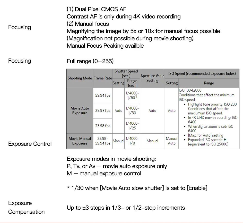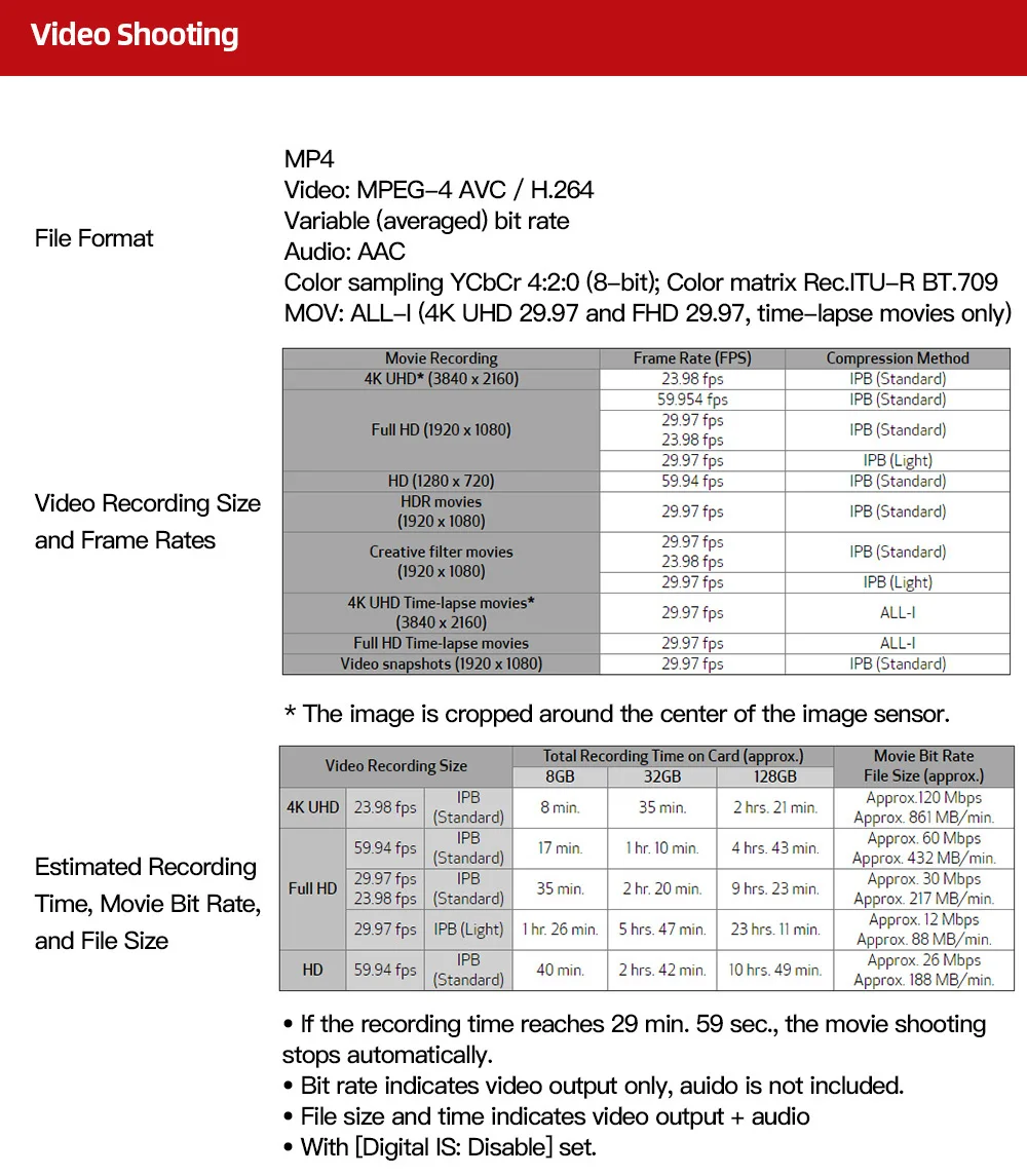 * Контрастный AF используется для фильмов 4K UHD.