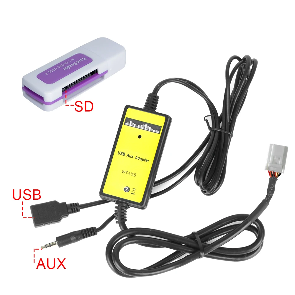 1.Этот тип не поддерживает радиомодель с навигацией и DVD Радио-моделью2. Перед покупкой. Пожалуйста, проверьте список совместимости продукта (включая модель автомобиля, год автомобиля, модель радиоприемника)3. Эта версия продукта не совместима с радиомоделью и имеет функции навигации и DVD4. Кабель Toyota Y (YT-TYY) является необязательным, когда порт переключения компакт-дисков занят NAV, AUX,XMПосылка включает в себя:1 х Автомобильный MP3 USB AUX адаптерКард-ридер-1 шт.