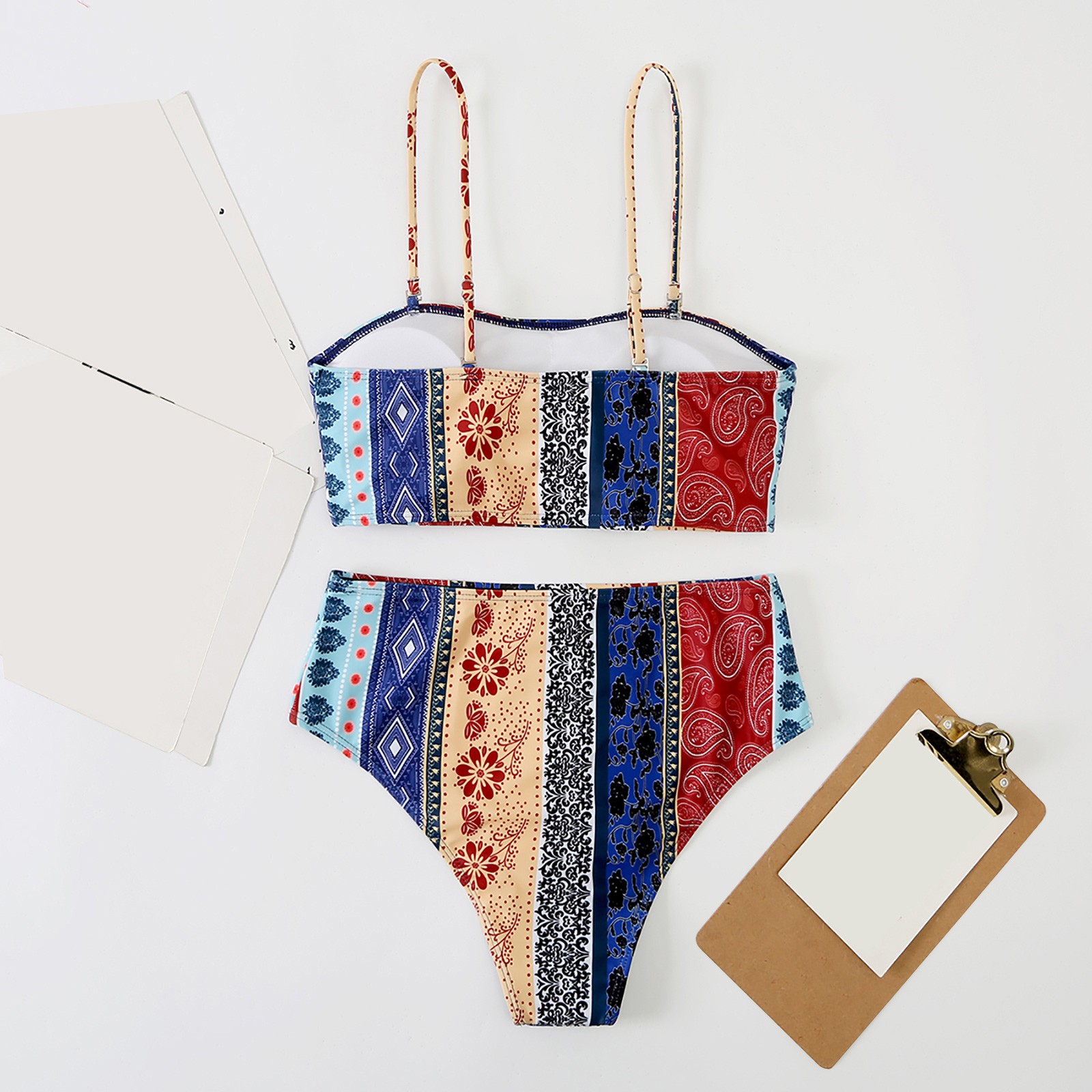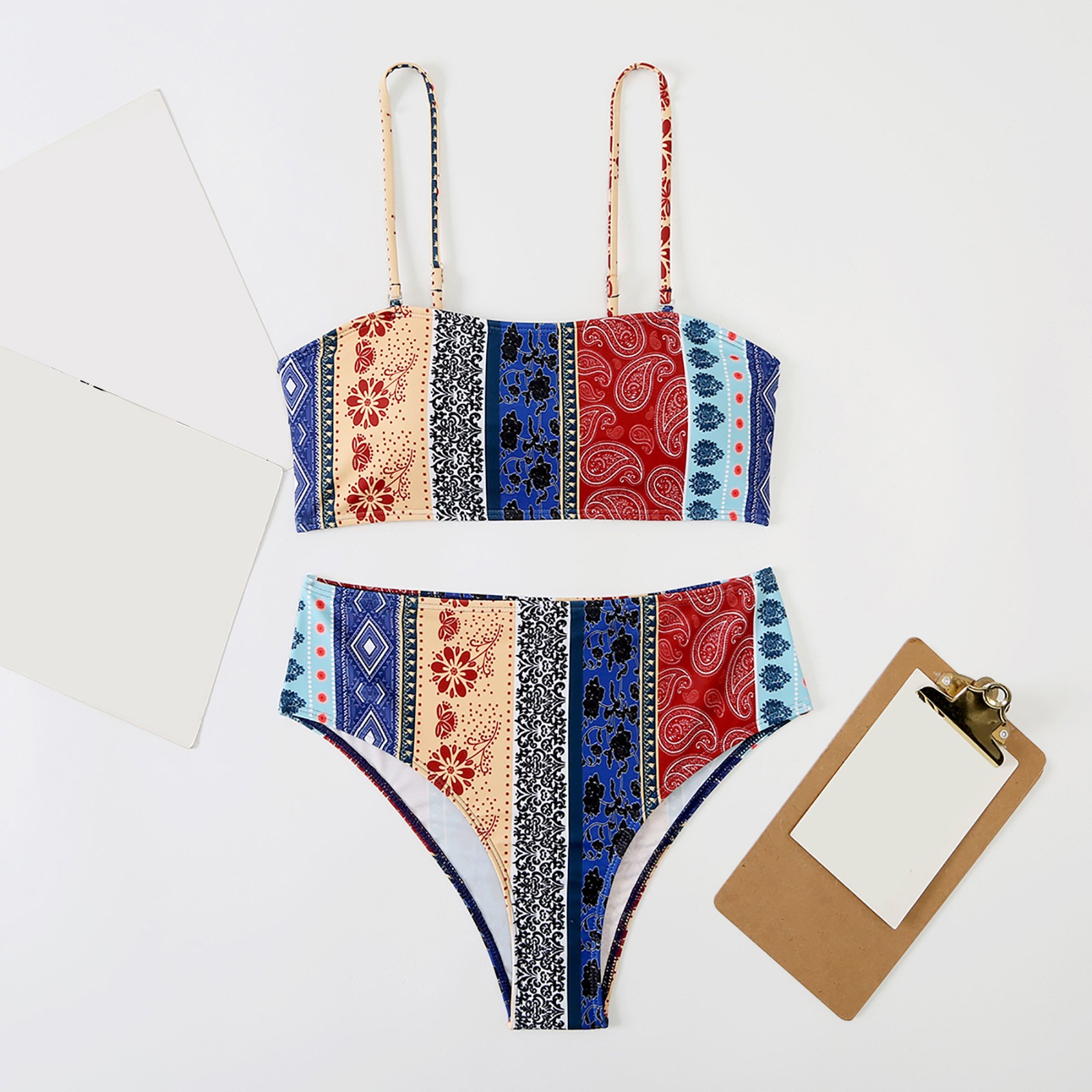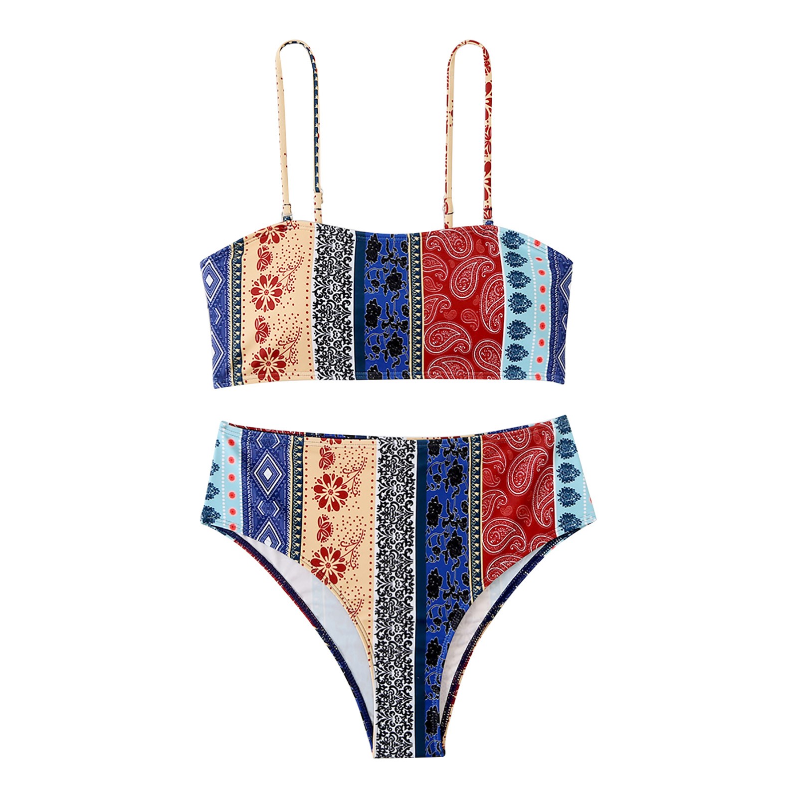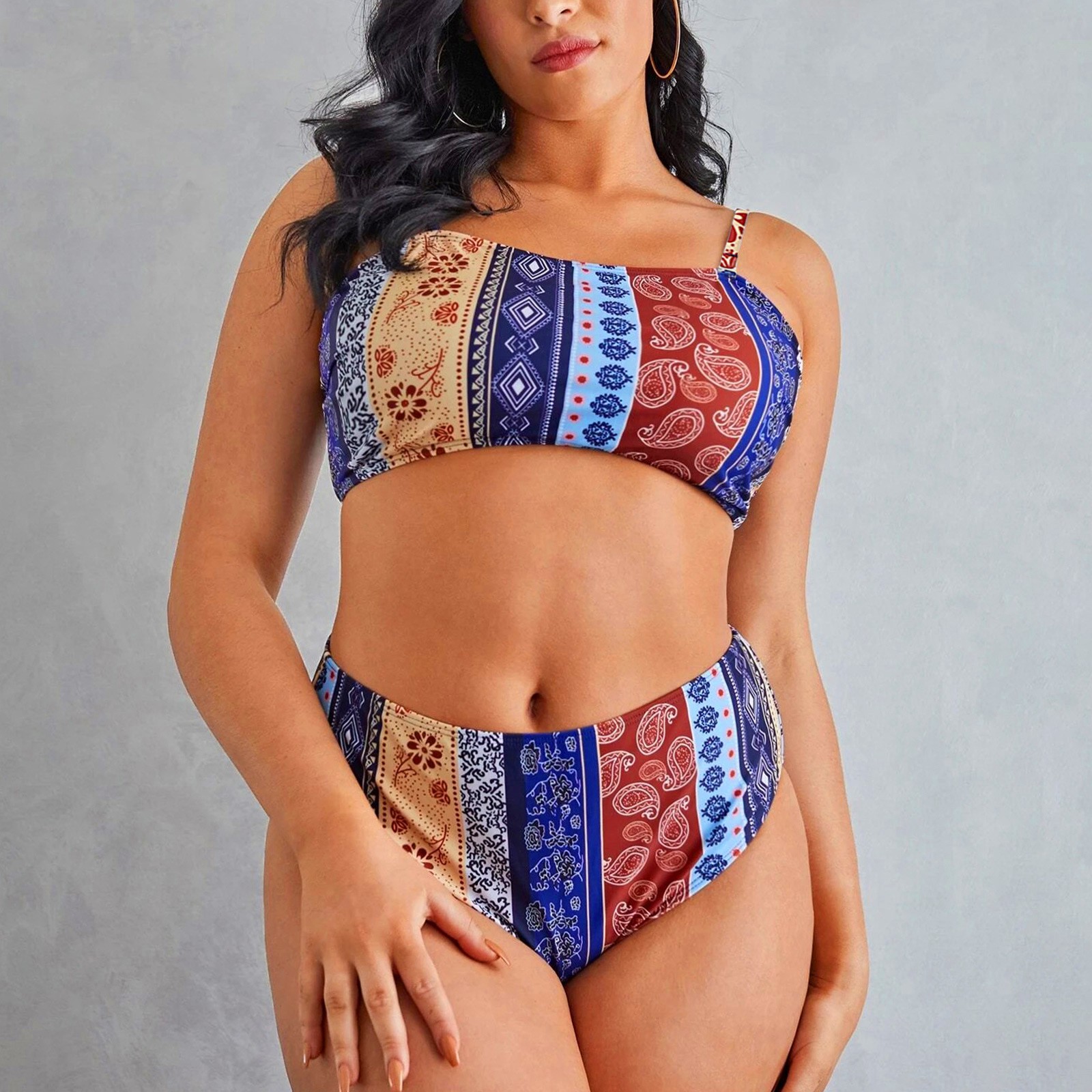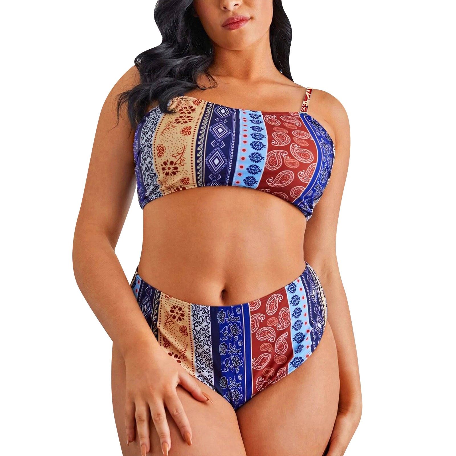 Комплект бикини размера плюс Mujer, сексуальный женский купальник, летний купальник с высокой талией и этническим принтом, пляжный купальный костюм из двух предметов с пуш-ап