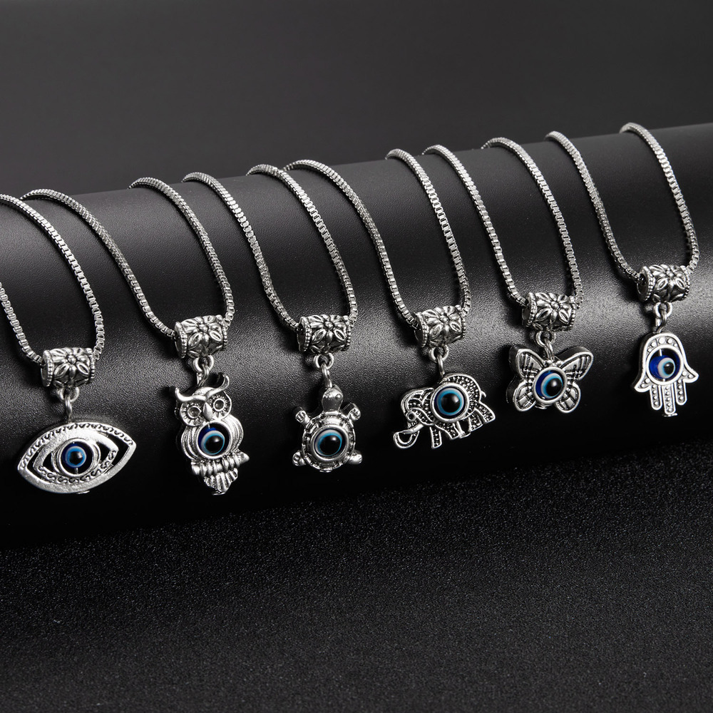 Модное турецкое голубое ожерелье со сглаза, счастливое ожерелье для женщин, полые ладони, ручная бабочка, Сова, слон, подвеска, цепочка, колье, ювелирное изделие, подарок на день Святого Валентина, вечерние дни рождения