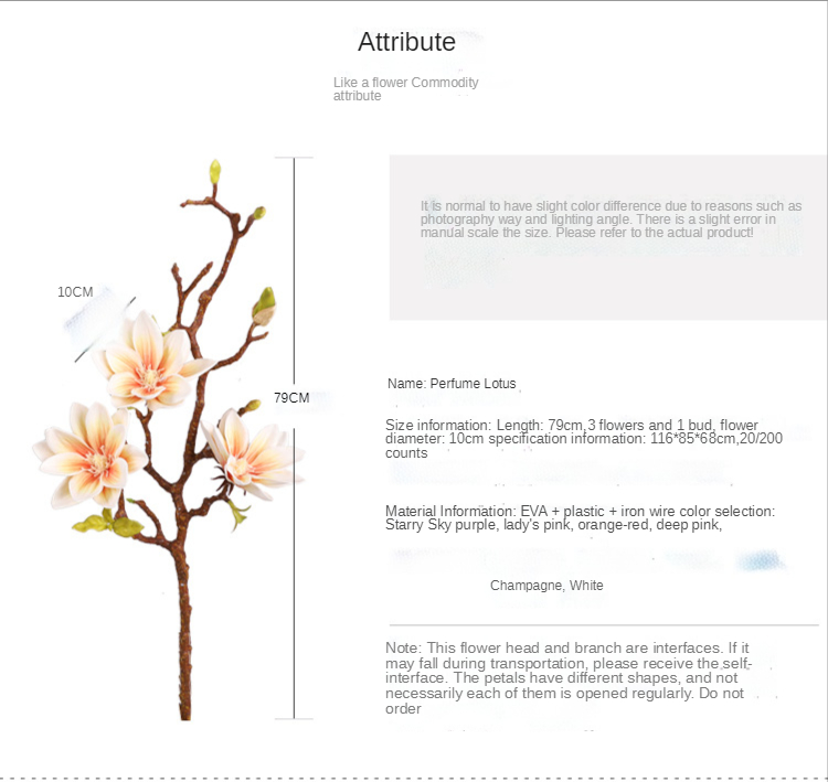 Объясните: Эта Цветочная головка и ветка-это интерфейс, который может упасть во время транспортировки. Пожалуйста, получите интерфейс самостоятельно. Лепестки имеют различные формы, и не все из них будут расти нормально. Советуем не снимать