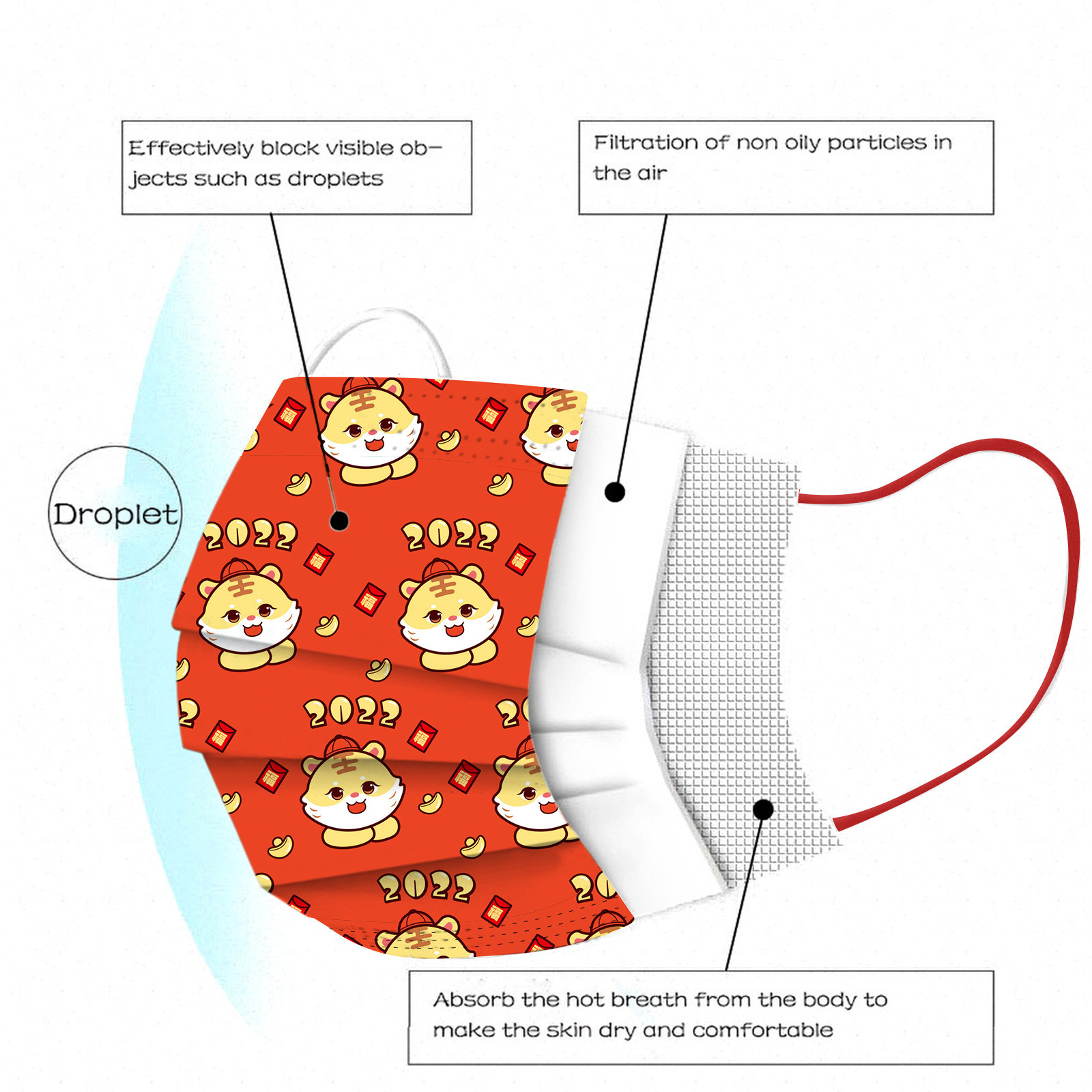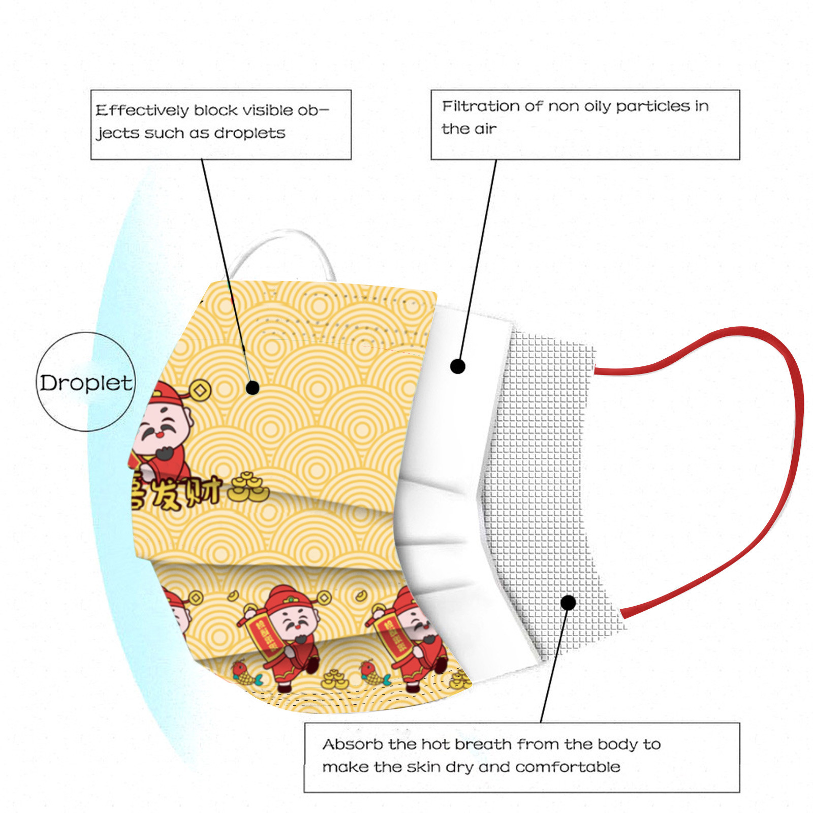 Breathable material and cute patterns, which makes it useful and fashionable. Special 3 ply non-woven design, provides some protections against automobile exhaust, pollen, etc.