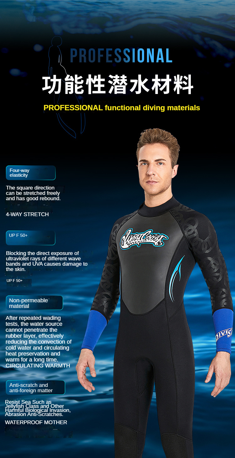 3 мм неопреновый гидрокостюм, мужской цельный костюм для серфинга и дайвинга, теплый женский и мужской купальник с длинными рукавами, купальный костюм для подводного плавания