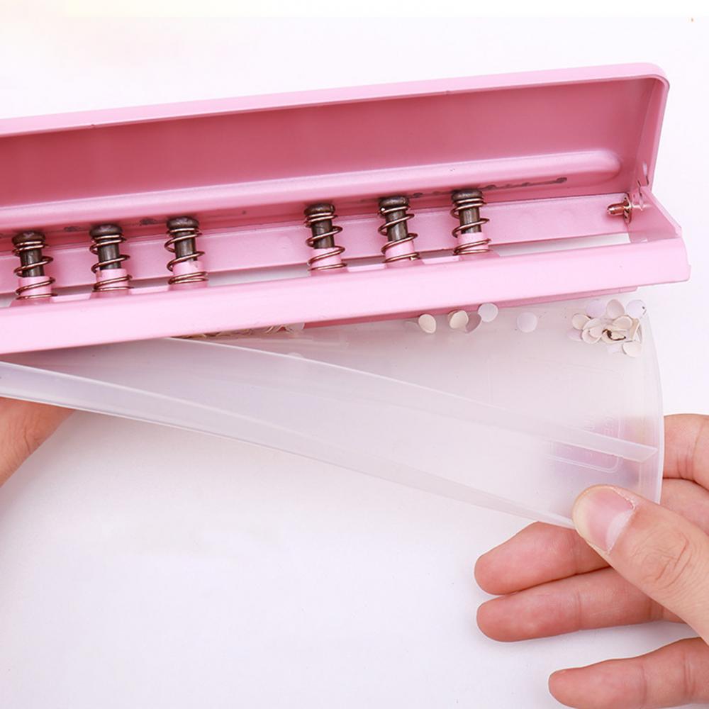 Удобный Перфоратор с 6 отверстиями с нескользящей резиновой основой, съемные рабочие части позволяют легко очистить лоток для чипов. Расстояние пробивного отверстия регулируется, и оно может удовлетворить ваши потребности в связывании.