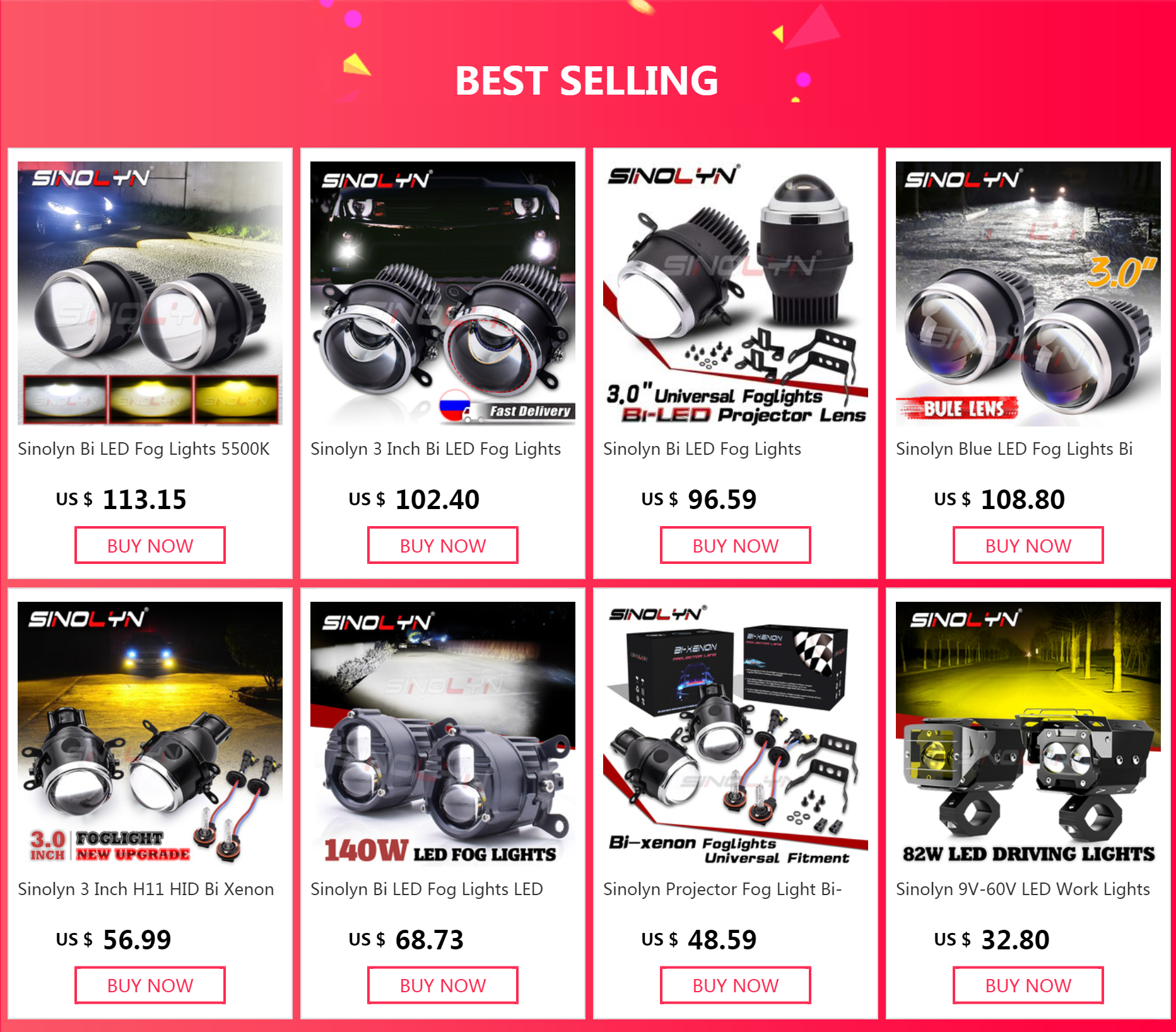 1. Это набор биксеноновых противотуманных фар SINOLYN нового дизайна с цельнометаллическим корпусом и прозрачными линзами.